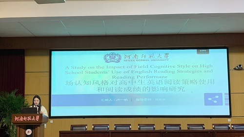 论坛伊始,7位研究生陆续分享了自己关于英语教学的研究成果和创新教学实践的反思。楚晓倩同学以《PBL教学模式在高中英语阅读教学中的应用研究》为题,探讨了PBL与高中生阅读成绩、阅读兴趣的关系,以及PBL在高中英语阅读教学中的策略。她指出,PBL是一种以学生为中心,以问题为导向的教学方法,强调跨学科、合作学习和实践应用。基于英语阅读教学现状以及高中英语新课标的要求,楚晓倩同学拟将 PBL模式应用于高中英语阅读教学当中,从而探究该模式的可行性与有效性,并提出相应的阅读教学策略来提高学生的阅读能力。