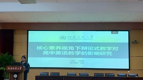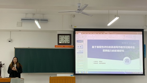 郅雅涵同学以《基于表现性评价的英语写作教学对高中生思辨能力的影响研究》为题。她强调了培养高中生思辨能力的重要性,并结合新课标要求,阐述了表现性评价在英语写作教学中的应用价值。通过对思辨能力和表现性评价的关键概念界定,以及对相关理论基础和国内外研究现状的综述,明确了研究方向,旨在探究表现性评价对高中生思辨倾向和技能的影响。