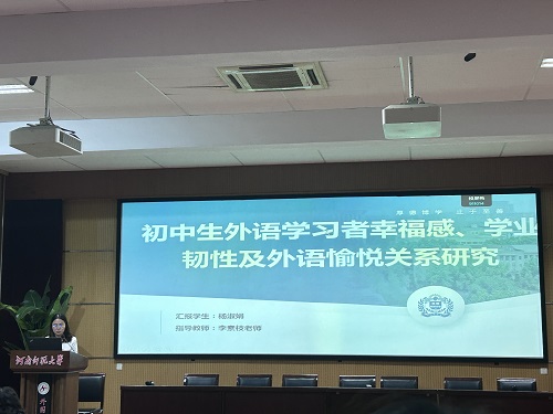 杨淑娟同学以《初中生外语学习者幸福感、学业韧性及外语愉悦关系研究》为题,通过混合研究方法探讨了初中生外语学习者幸福感、学业韧性和外语愉悦的相互联系。该研究基于积极心理学理论,旨在通过问卷调查和访谈等混合研究方法,探讨这三者之间的相互作用及其对外语学习成效的影响,以期为教育实践提供理论支持和实践指导。她指出,外语教育的目标不应局限于提高外语学习者的语言知识、技能以及语言教师的教学成效,还应关注学习者的心理健康,进而提升他们的幸福感。