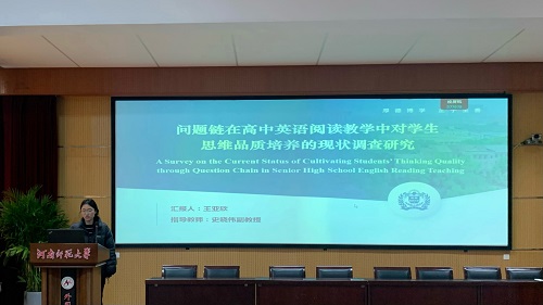 王亚欣同学针对《问题链在高中英语阅读教学中对学生思维品质培养的现状调查研究》,深入探究当前问题链在阅读教学中的应用情况,发现虽有成效但存在设计缺乏系统与深度等不足,而合理的问题链本可引导学生逐步深入思考,这为后续优化阅读教学提供了重要依据。