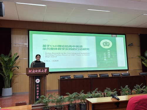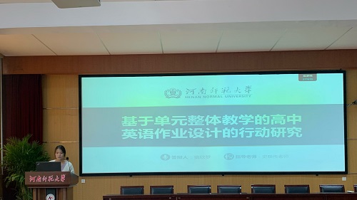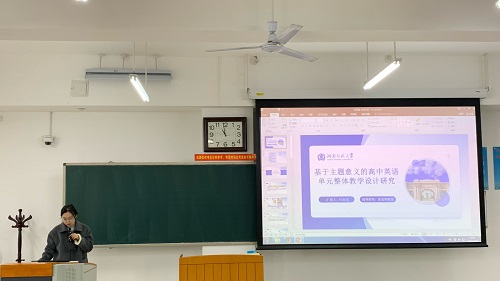 刘雨盈同学以《基于主题意义的高中英语单元整体教学设计研究》为题,依据新课标和新教材要求,分析了当前高中英语教学设计存在的问题,强调了基于主题意义的单元整体教学的重要性。通过对核心概念的界定和理论基础的阐述,以及对国内外相关研究的综述,明确了研究方向,旨在探究教师对该教学模式的认知情况以及对学生学习兴趣和能力的影响。