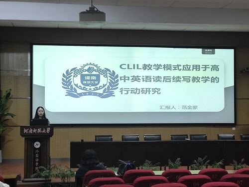 论坛伊始,7位研究生陆续分享了自己关于英语教学的研究成果和创新教学实践反思。范金蒙同学分享了一篇以《CLIL教学模式应用于高中英语读后续写教学的行动研究》的文献。她探讨了读后续写的重要性、学生和教师面临的挑战、CLIL模式的必要性,以及该模式对学生写作动机和能力的影响,最终发现CLIL模式能显著提升学生的写作动机和内容创作能力。除此之外,范金蒙同学进行了读后反思,指出了该研究的不足之处和可借鉴的方面。