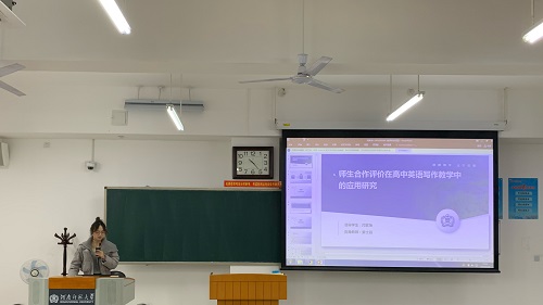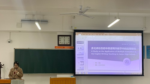 杨杰如同学以《师生合作评价对高中生英语应用文写作影响的行动研究》为题,探讨了师生合作评价(TSCA)在提升高中生英语写作能力方面的应用与效果。她指出,通过教师的主导和学生的积极参与,TSCA能够激发学生的学习兴趣,提高他们的写作动机和自我评价能力。杨杰如同学的研究强调了在写作教学中融入师生合作评价的重要性,并提出了具体的教学策略,包括设计以学生为中心的写作活动、实施多元化的评价方法和促进学生自我反思。