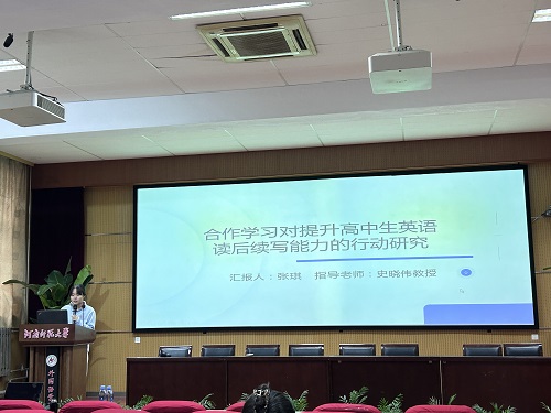 张琪同学以《合作学习对提升高中生英语读后续写能力的行动研究》为题,探究了合作学习在提升高中生英语读后续写能力方面的可行性,以及对教学实践和学生综合能力发展的重要意义。张琪同学结合高中英语新课程标准要求以及读后续写现今学习现状,以互动协同理论为指导,将合作学习应用于高中英语读后续写教学中,通过实验,访谈等方式试探究了合作学习对提升高中生英语读后续写能力的可行性,以期能改善学生续写现状,提高读后续写成绩和续写水平,培养学生综合语言运用能力。