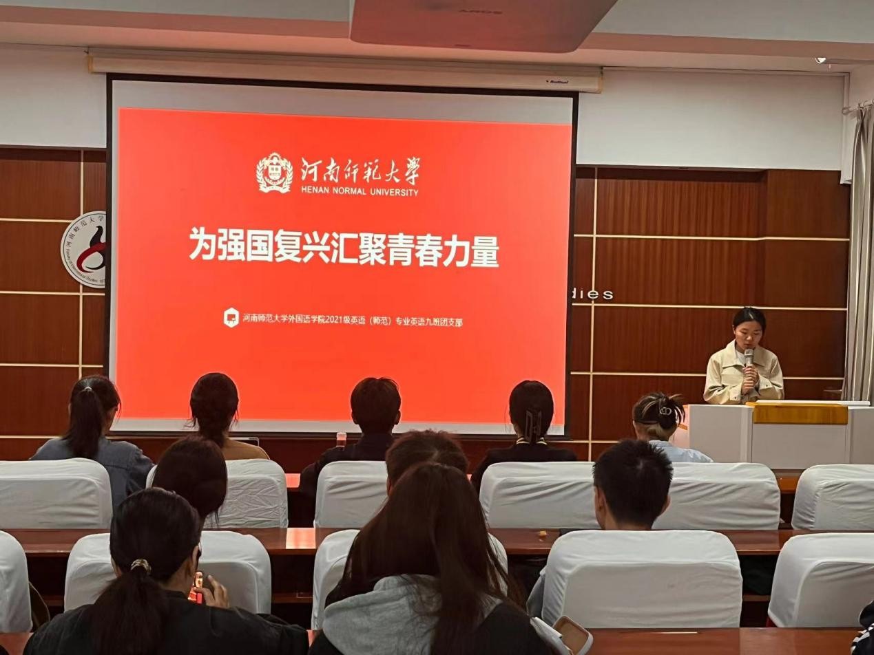 为深入学习宣传贯彻党的二十大精神,激发青年一代的爱国热情,弘扬爱国主义精神,使青年一代在复兴大业中有所作为,10月29日晚7点,外国语学院团委于国培教室举办“坚定强国信念·复兴华夏荣光”专题学习研讨会。