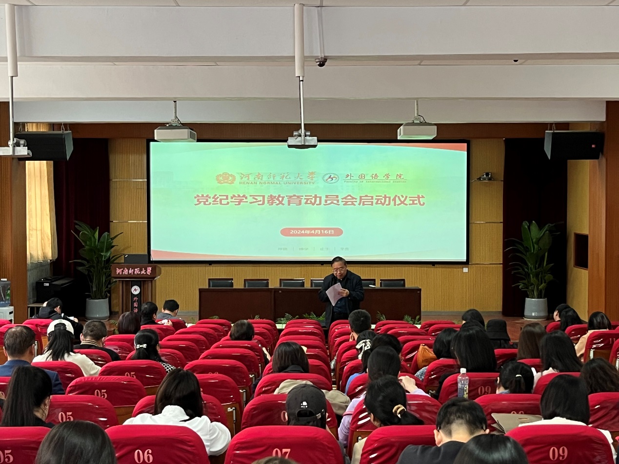 4月16日下午,外国语学院在学院报告厅召开党纪学习教育动员会。学院全体党员参会。党委书记赵成福主持会议并讲话。