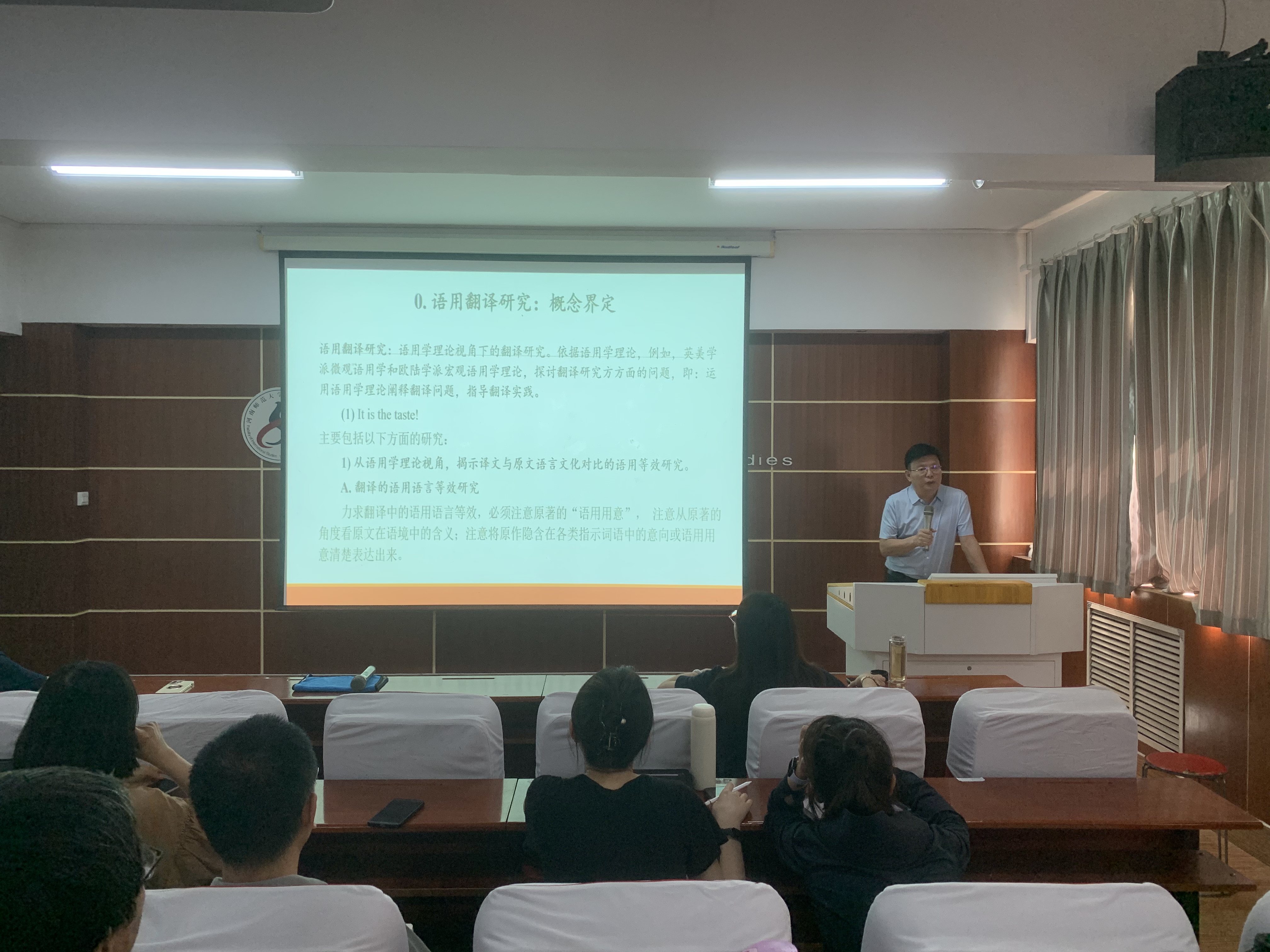 612日,应外国语学院邀请,华南农业大学李占喜教授在学院A204室作了题为“语用翻译研究”的学术报告,学院近百名师生参会聆听。外国语学院院长刘国兵主持报告。