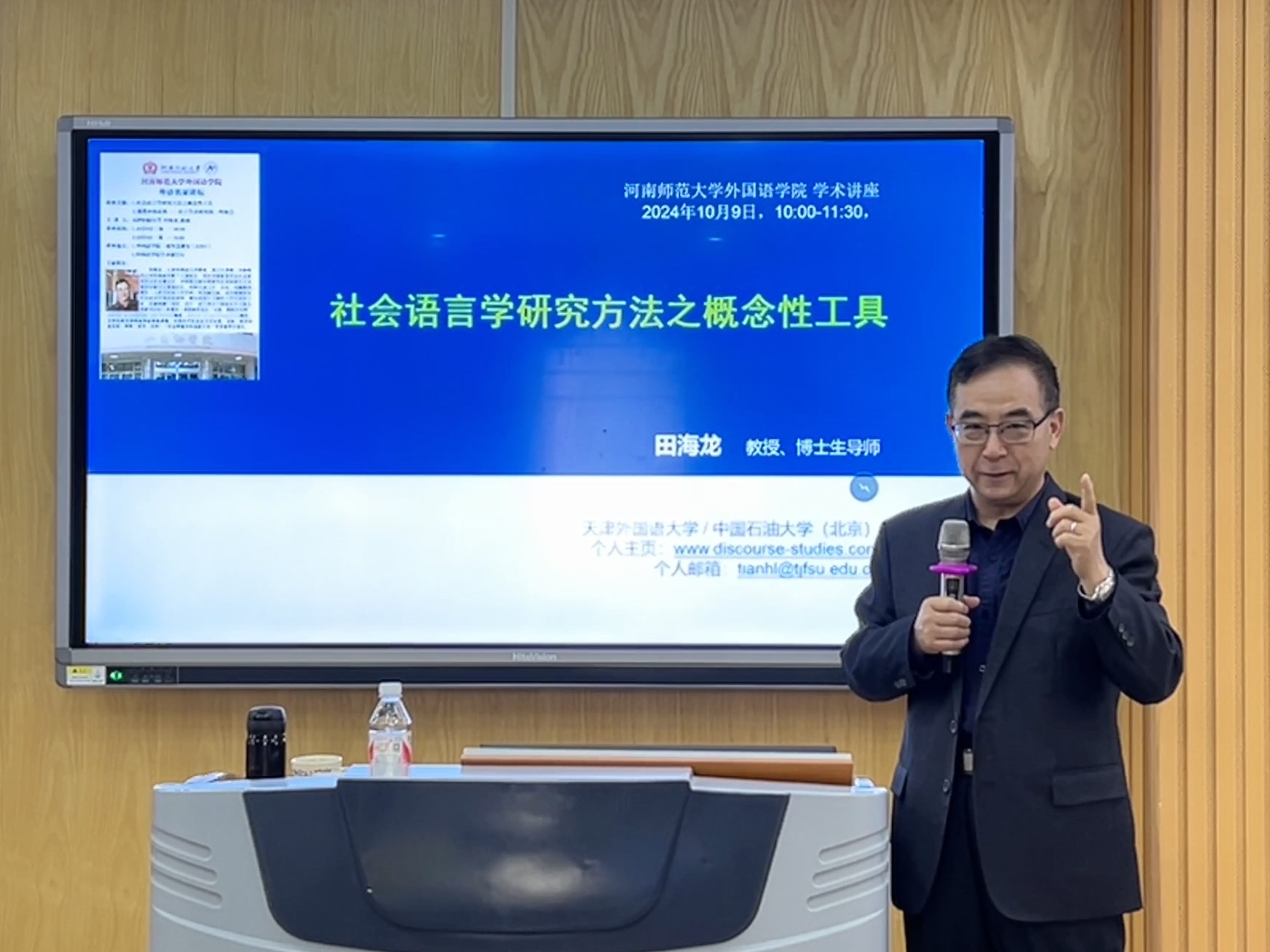 10月9日,应外国语学院邀请,天津外国语大学田海龙教授在学院A301室作了题为“社会语言学研究方法之概念性工具”的学术报告,学院近百名师生参会聆听。外国语学院副院长王清杰主持报告。