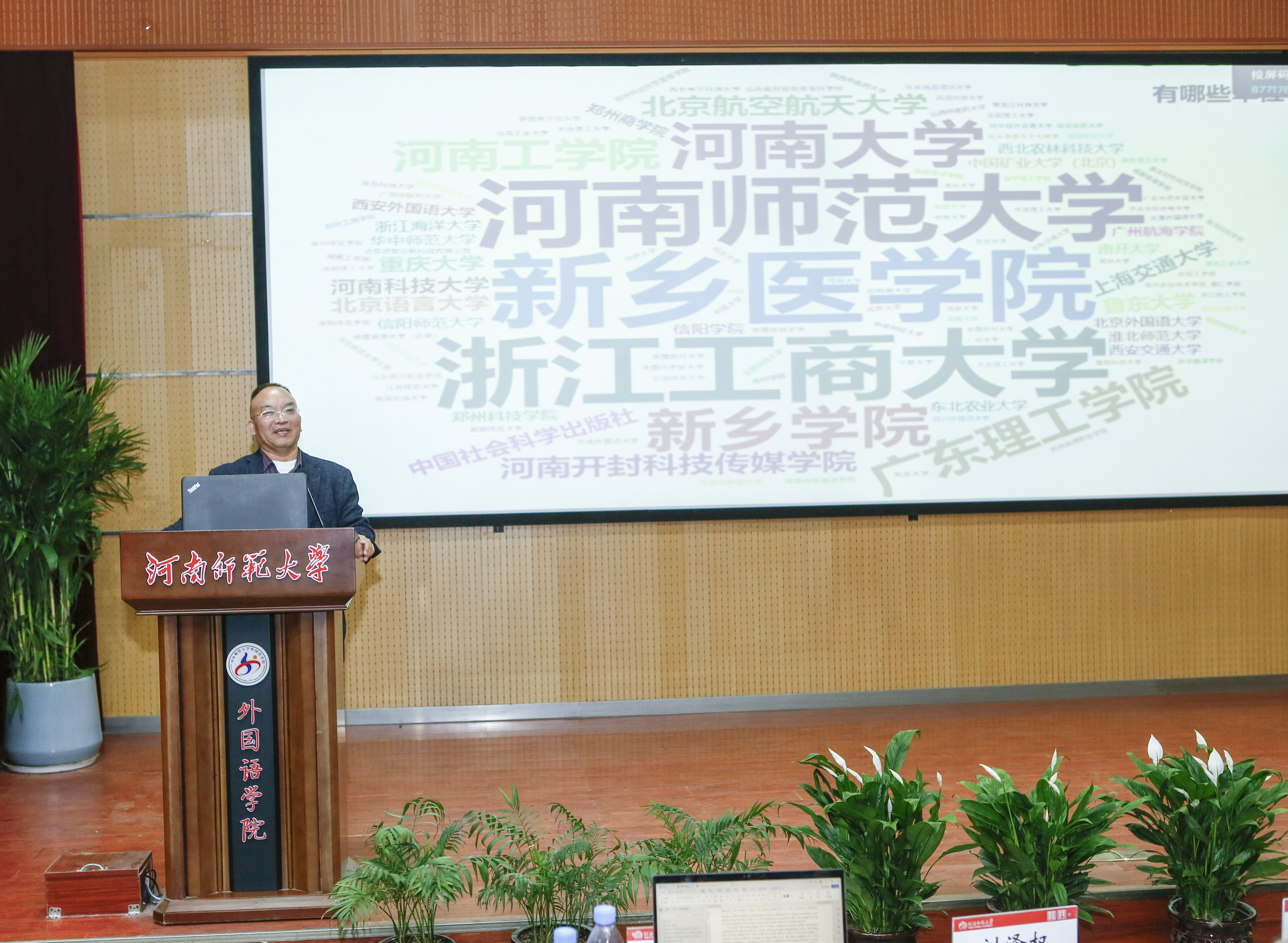 河南大学二级教授、博士生导师刘泽权教授作了题为“数智时代人工翻译何为?——人工与机器、智能学术外译文本对比考察”主旨发言。他认为,自ChatGPT问世以来,较多学者关注到人工智能工具和大语言模型给外语学习、写作、翻译等带来的挑战和机遇,鲜有研究以富有创意和情感的文学文本或蕴含文化和价值观念(意识形态)的政论、历史等人文学术类文本的翻译为对象,系统全面对比传统人工翻译与机器智能翻译的优劣。他以中华学术外译项目《中华文明的起源》英译实践为例,分别运用WordSmith、BLEU、TER等量化方法和语篇调整、特色文化词语范畴化等定性方法,对比人工翻译与ChatGPT、Google、DeepL、有道、文心一言等机器智能翻译的异同得失,以期为数智时代对外做好中国翻译实践和培养高端翻译人才提供借鉴。