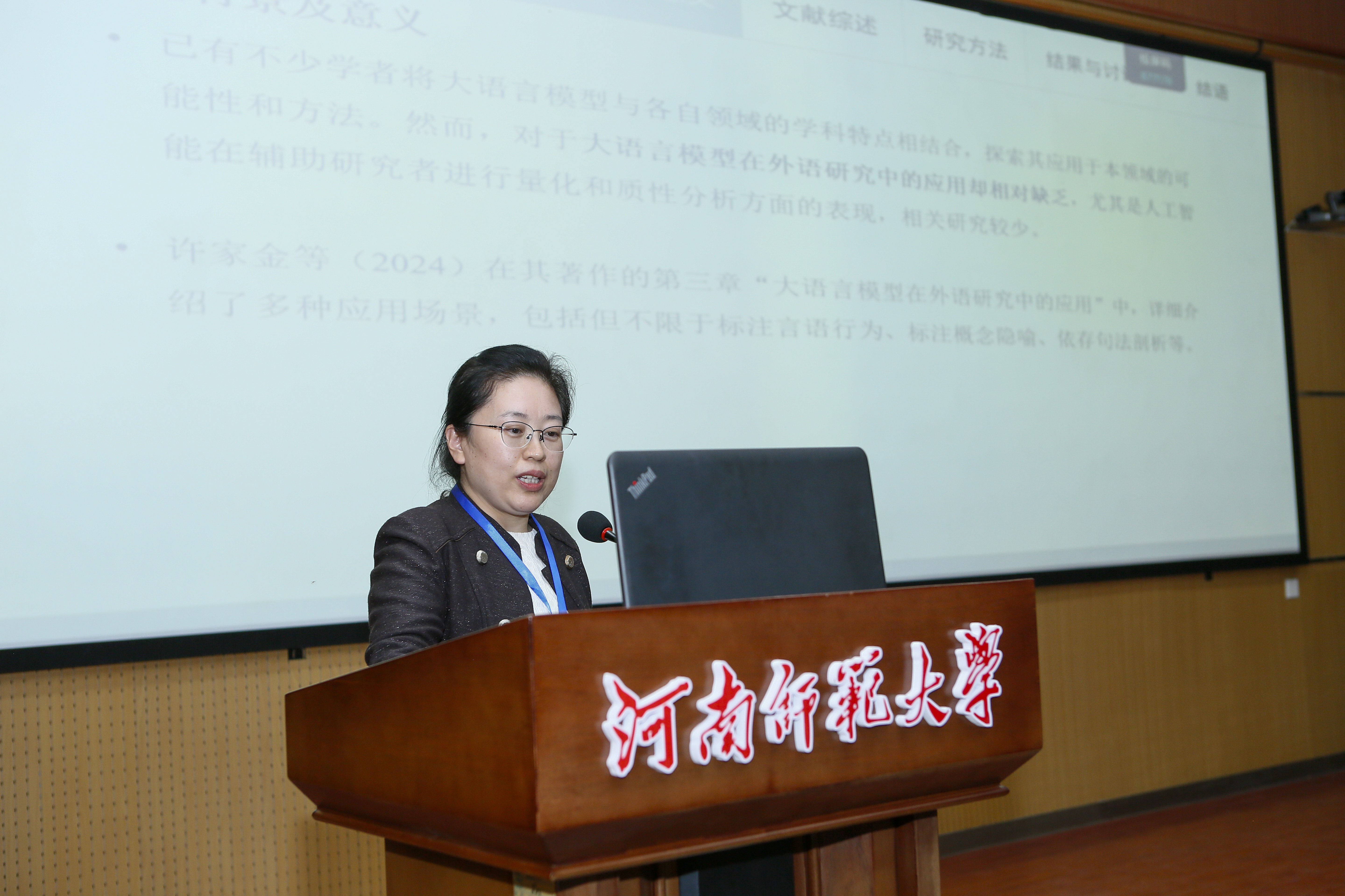 对外经济贸易大学英语学院副院长、博士生导师、国家法官学院司法案例研究院兼职研究员陈功教授作了题为“AI赋能扩展意义单位分析”的主旨发言。她指出,基于大语言模型的生成式人工智能在语言学研究中的应用前景引起了研究者的广泛关注。她利用语料库工具与AI开展协同研究,评估了AI在扩展意义单位分析中的表现。结果表明,在“搭配和类联接分析”方面,AI频数统计准确率较高,但整个提取过程需要研究者逐步下达指令;在“语义倾向和语义韵分析”方面,AI在总结语义倾向时回答变化较大,且对研究者指令的提出有一定要求,但语义韵分析较为准确;在“话语管理分析”方面,AI表现良好,能够进行批量分析,但数据量大时回答较为简略,具体原因有待进一步探索。总体而言,AI能够较好地辅助研究者开展语料库相关量化和质性分析,可以有效提高研究效率,为研究者开展语料库研究提供了新视角、新思路。