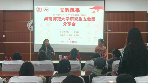 为引导广大青年坚定理想信念,牢记初心使命,深化学生对研究生支教团项目的认识与了解,11月15日晚,外国语学院于国培教室举办研究生支教团交流分享会。学院共70余名学生代表参与,活动由2022级专职辅导员郭倩倩主持。