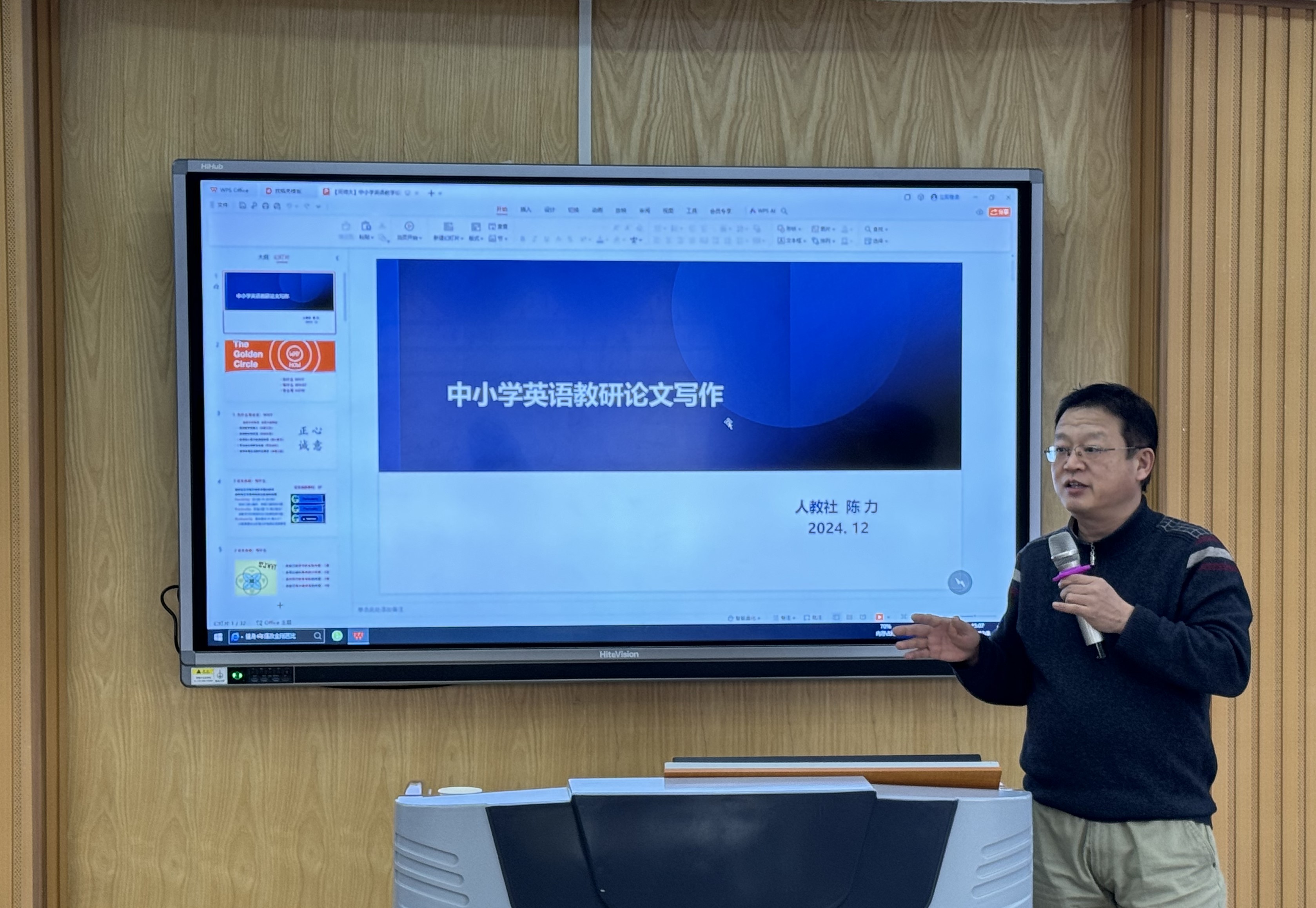 12月8日,应外国语学院邀请,人民教育出版社编审陈力在学院A301室作了“语篇分析与指向素养目标的英语阅读教学”的学术报告,学院近百名师生参会聆听。外国语学院王彩琴教授主持报告。