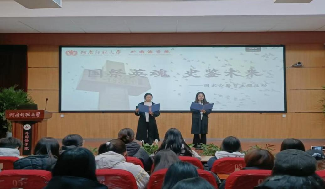 12 月 14 日下午,外国语学院在报告厅隆重举行 “国祭英魂,史鉴未来” 国家公祭日主题活动,110 余名学生怀着沉痛而崇敬的心情参与其中,共同悼念南京大屠杀遇难同胞及抗日战争期间所有罹难者,铭记历史,祈愿和平。