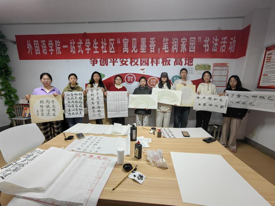 为弘扬中华优秀传统文化,丰富同学们的课余生活,营造浓厚的“一站式”学生社区“家园”氛围,外国语学院于3月9日在西十六“一站式”学生社区开展“寓见墨香 笔润家园”书法活动。此次活动吸引一站式学生社区众多学生参与。