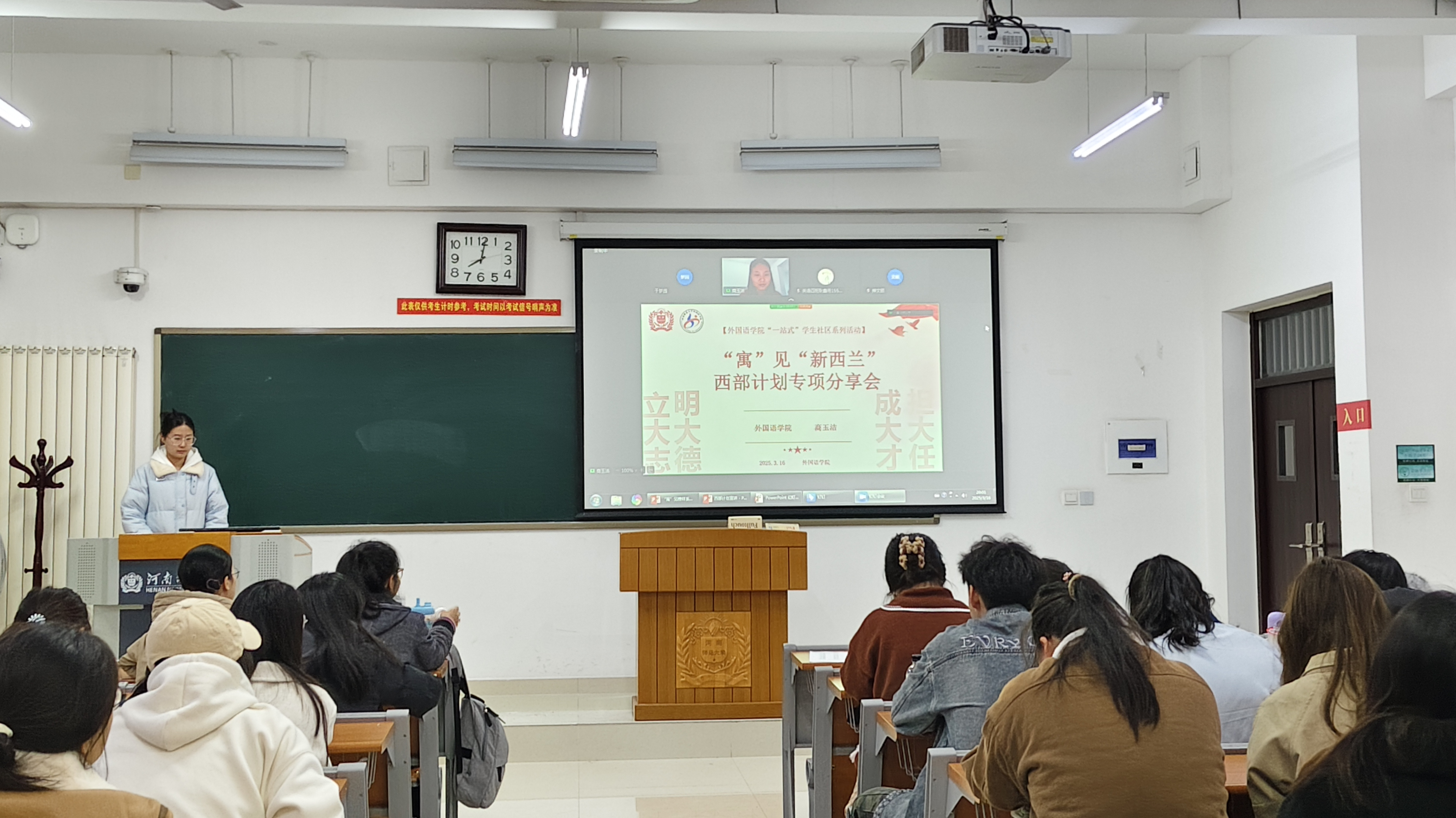 为引导广大学子树立正确的价值观和择业观,坚定服务基层、奉献社会的理想信念,3月16日晚,外国语学院在文昌楼110教室举办西部计划线上专项分享会。学院相关负责人、学生代表共40余人参与此次活动。