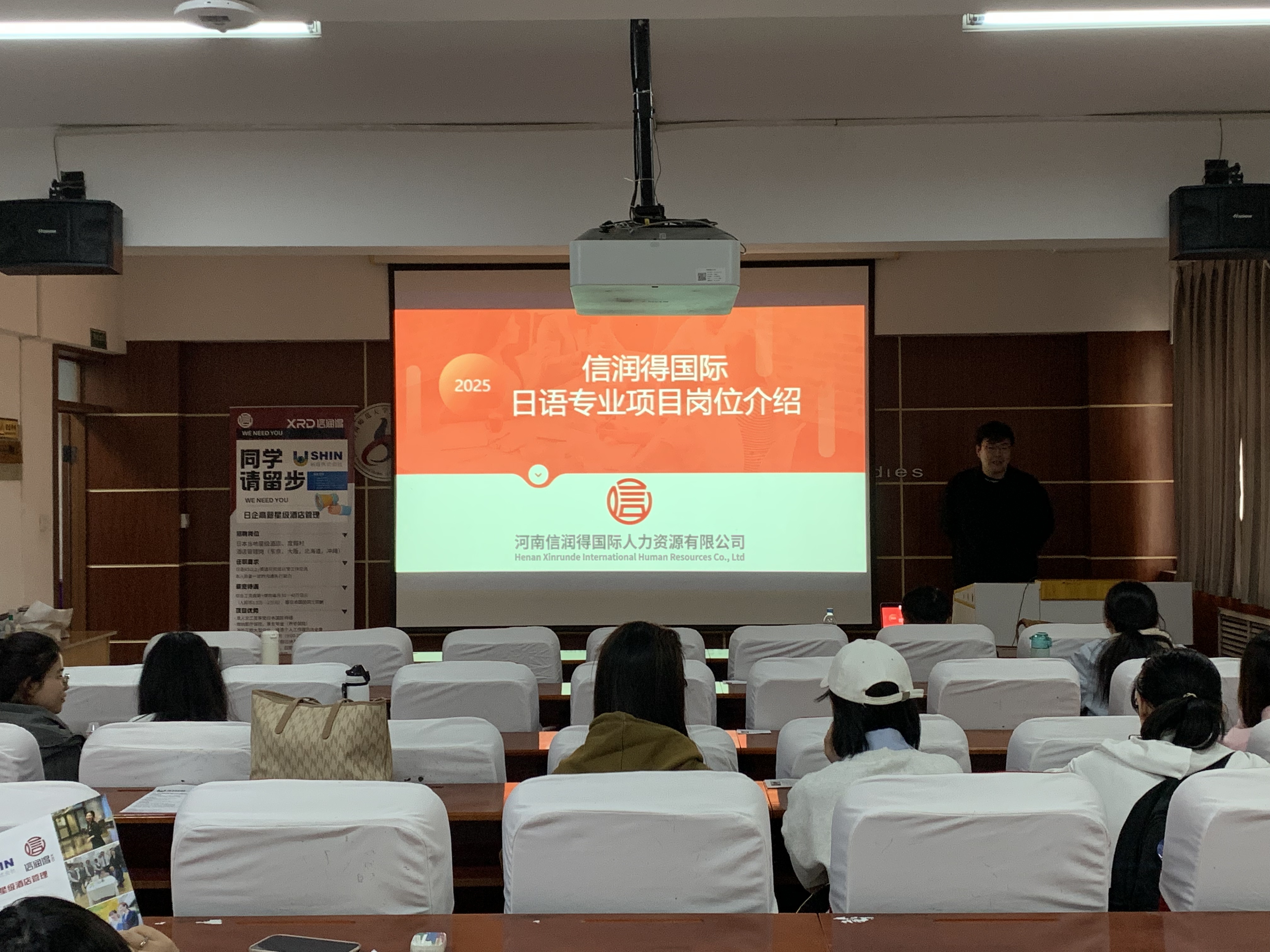 为拓宽毕业生就业渠道,提升人才培养质量,加强院企合作,2025年3月24日下午,河南信润得国际人力资源有限公司专场宣讲会在外国语学院国培教室举行。信润得公司相关负责人岳啸、毕业班辅导员彭典范、钱江红以及日语专业学生参加了此次会议。