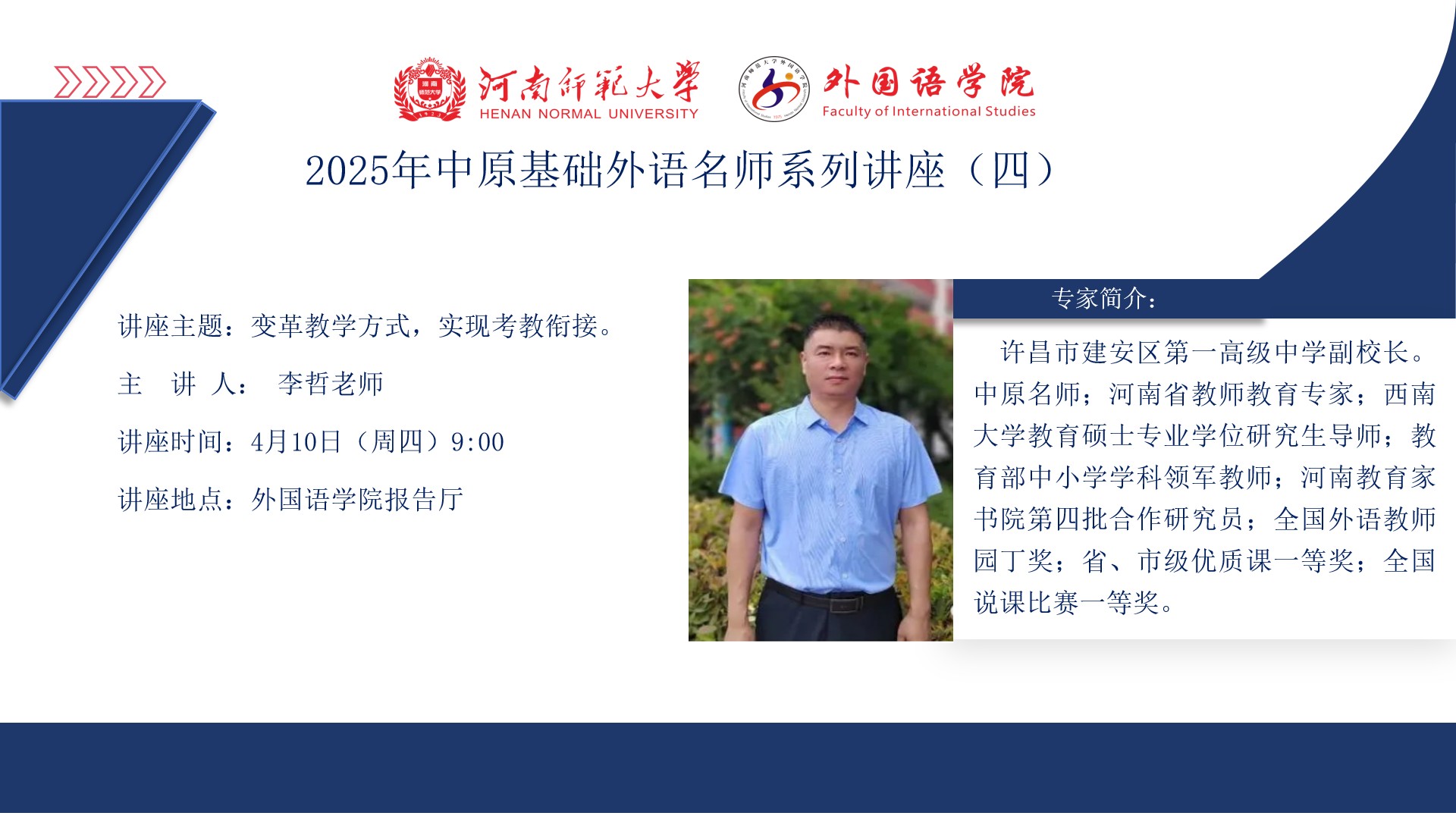 中原基础外语名师系列讲座(四):变革教学方式,实现考教衔接。---许昌市建安区第一高级中学李哲老师