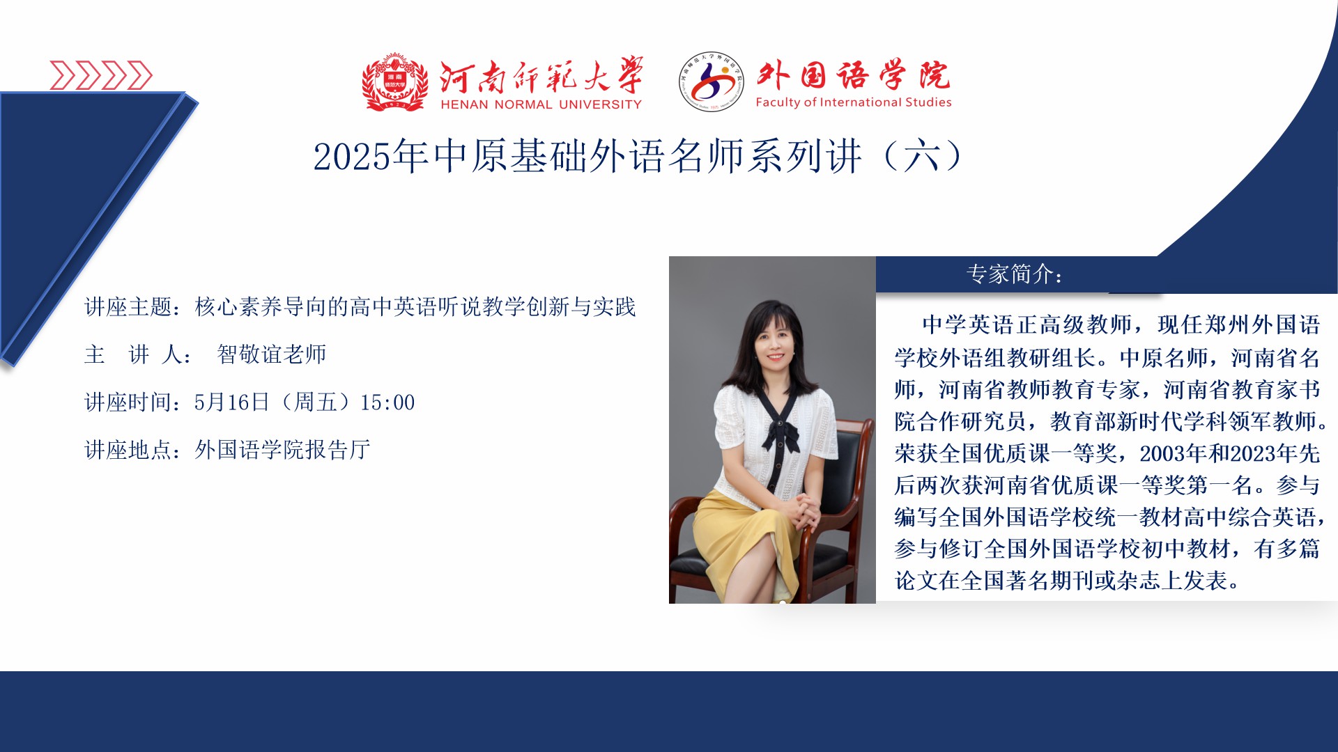 中原基础外语名师系列讲座(六):核心素养导向的高中英语听说教学创新与实践--郑州外国语学校智敬谊老师