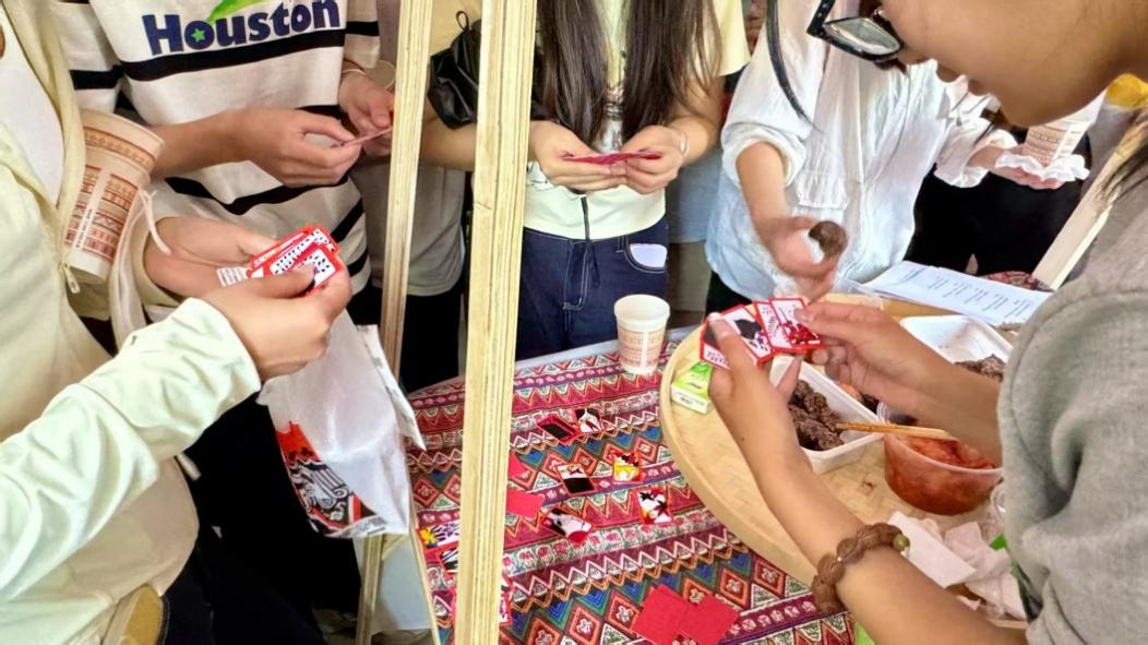 活动现场设置“美食工坊”“文化长廊”“趣味挑战”三大主题区。朝鲜族学生在“美食工坊”主题区演示木槌打糕技艺吸引师生目光,辣白菜腌制团队展示“一选二腌三发酵”古法工艺,引得师生争相体验。明太鱼干、米酒等20余种特色美食组成“长白山风味”主题展台,辅以双语讲解牌标注文化渊源。身着朝鲜族传统服饰的学生化身文化使者,通过“美食背后的故事”生动阐释“药食同源”“五色五行”等饮食哲学。学院团委负责人师公祯表示,美食是流动的文化基因,今天石臼与木槌的铿锵节奏,是传统文化与时代脉搏的共鸣。青年学子要成为文化基因的唤醒者,让传统技艺在校园焕发新生。