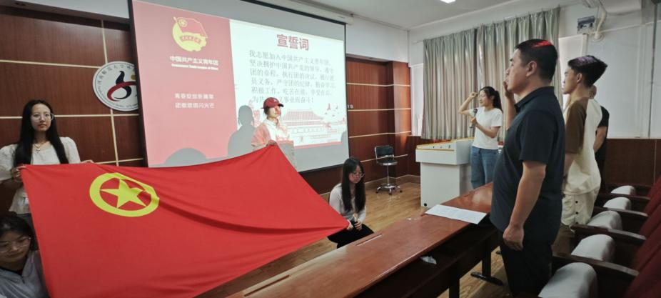 6月13日中午,外国语学院于国培教室举行2025年新发展团员入团仪式,校团委副书记杨上上参加本次会议,会议由学院团委负责人师公祯主持。