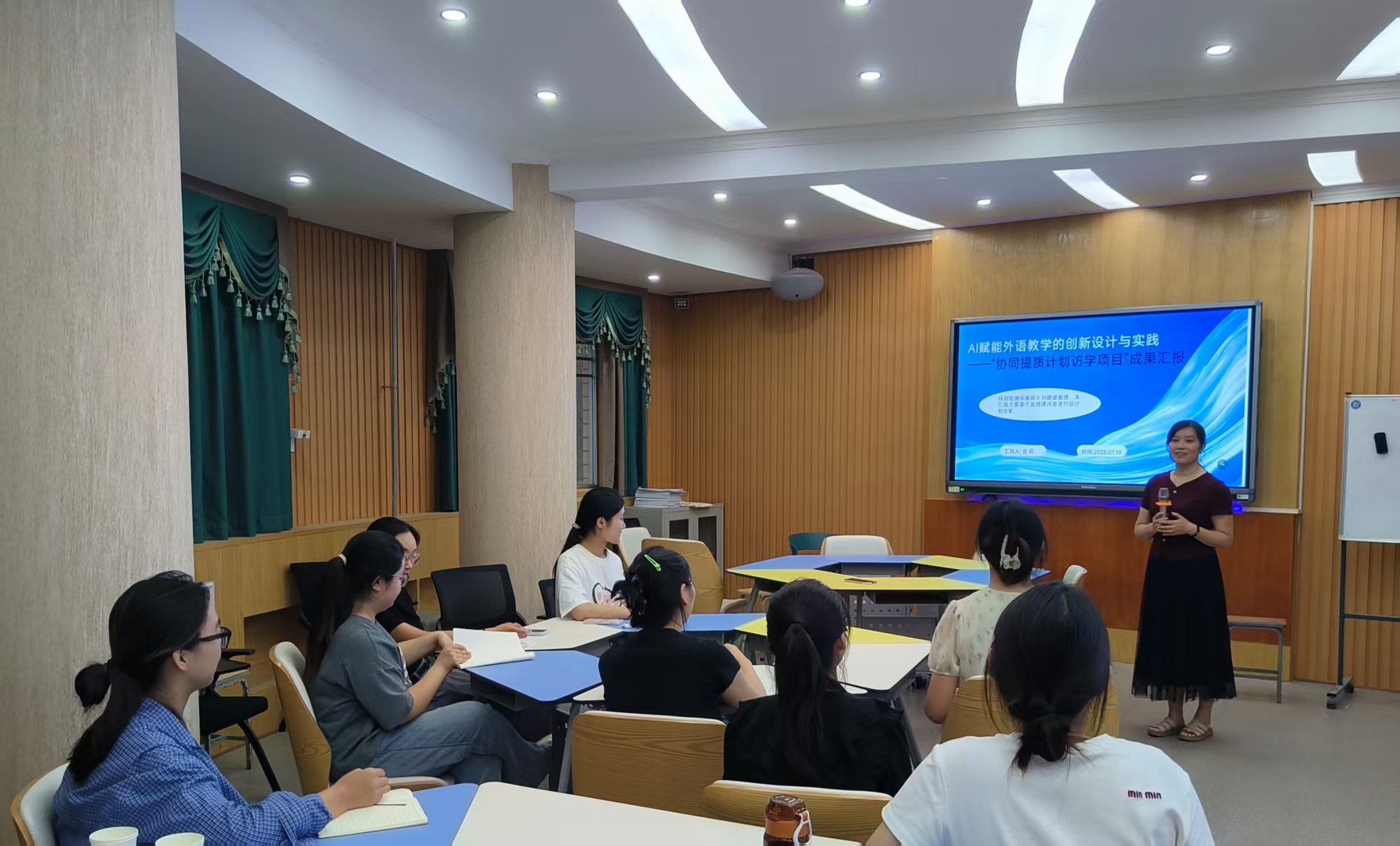 7月10日,外国语学院三楼智慧教室举办“AI赋能外语教学的创新设计与实践”专题报告会。本次报告会由金莉老师主讲,作为其参与教育部“协同提质访学项目”的阶段性成果汇报,学院在校部分本科生和硕士生参加。