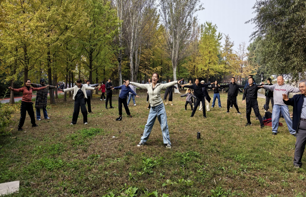 随着发言环节的结束,在体育学院路静老师和文秀丽老师的带领下,全体校友进行了充分的热身运动,活动筋骨,为接下来的健步走做好准备。热身结束后,大家沿着奥森公园的专属步道有序出发,一路上,校友们或畅谈工作生活趣事,或交流专业知识与行业动态,或欣赏公园内的秋日美景,欢声笑语不断。健步走全程约5公里,大家相互鼓励、携手同行,充分展现了河师大外院校友积极向上、团结友爱的精神风貌。