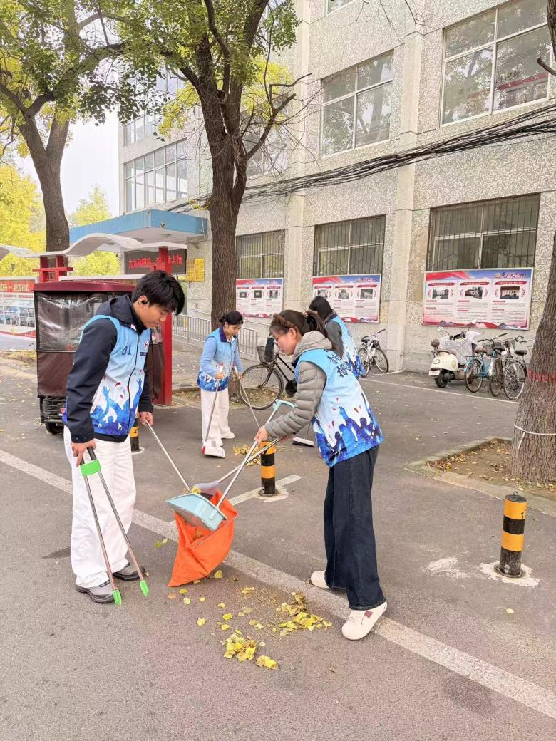 活动现场,二十名志愿者手持扫帚、垃圾钳等工具分三队开展志愿活动。志愿者们采用“地毯式”清理法清理主干道,将落叶聚集成堆后规范清运;俯身清理藏匿在绿化带中的烟头、塑料瓶等细小垃圾,累计清理卫生死角十多处;重点整治单元门口杂物堆积问题,规范非机动车停放秩序。劳动间隙,志愿者们还化身“环保宣传员”,向社区居民讲解垃圾分类标准、日常环保小技巧,宣传环境保护的重要性。现场忙碌的身影构成了社区里一道亮丽的风景线,赢得了社区居民的广泛赞誉,居民王奶奶感慨道:“这些孩子不怕脏累,还教我们怎么分类垃圾,社区环境确实需要年轻人带动!”参与此次志愿活动的同学们纷纷表示在劳动中体会到了“奉献、友爱、互助、进步”的志愿精神。