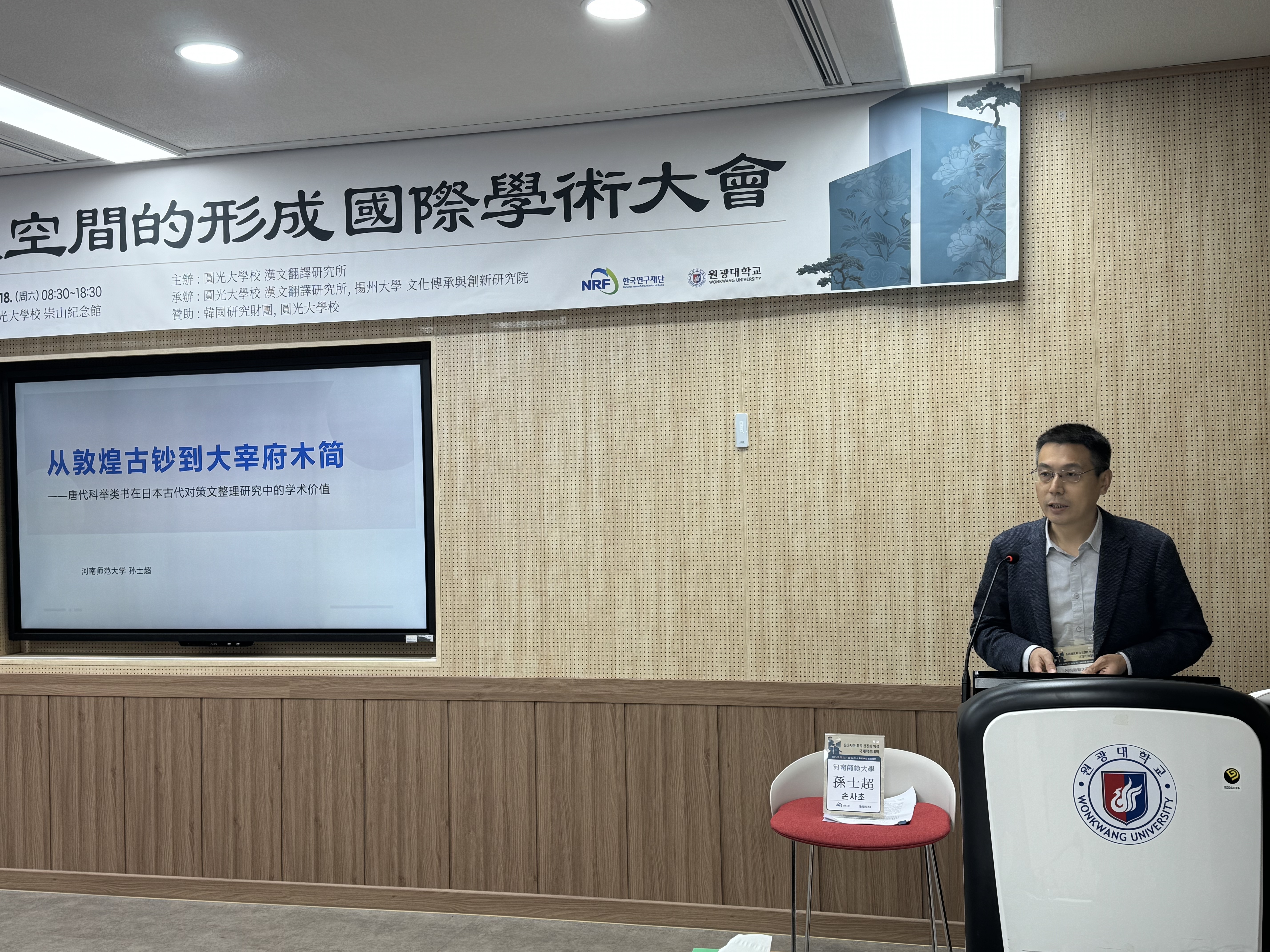 近日,第一届“东亚知识空间的形成国际学术大会”在韩国益州市成功举办。此次会议由韩国圆光大学汉文翻译研究所主办,汇聚了来自中国、韩国、日本及中国台湾、中国香港地区20多所机构的80余名学者。外国语学院副院长孙士超教授受邀参会并作大会报告。
