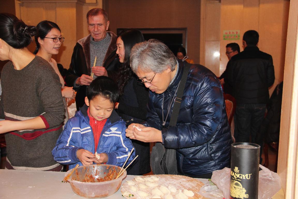 2016年 1月8日是二九的最后一天,俗话说“一九二九不出手”,但寒冷的天气并不能阻挡外院人参与集体活动的热情,下午三点,外国语学院工会在近园餐厅组织开展了教职工包饺子活动,全院百余名教职工集体动手,将对学院浓浓的祝愿包裹进小小的饺子,活动现场洋溢着幸福、团圆的暖意。