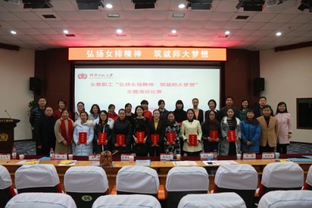11月22日,校工会主办的女教职工演讲比赛在物理与材料科学学院学术报告厅开幕。本次演讲比赛以“弘扬女排精神筑就师大梦想”为主题,来自全校各分工会的29名选手参加了比赛,近300名师生观看了比赛。