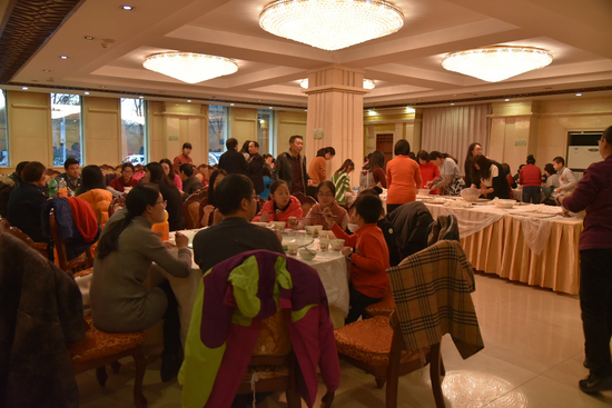 12月24日下午,外国语学院工会在近园餐厅组织开展了教职工包饺子活动,欢庆传统节日“冬至”。学院党委书记宋霞、工会负责人贾建嵩和全院百余名教职工齐聚一堂集体动手,揉面的、擀饺子皮的、拌馅料的、包饺子的,60后、70后、80后、90后还有我们的孩子们都积极参与、各司其职。现场气氛和谐热闹,欢声笑语。