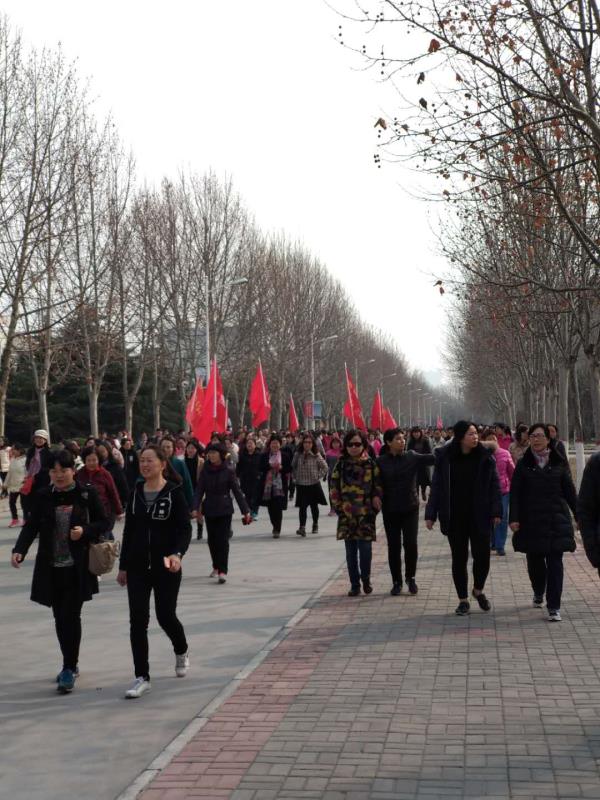 3月8日下午,为纪念“三八”国际劳动妇女节108周年,由校工会举办的“巾帼新风采 走进新时代”女教职工健步走活动于东校区成功举办,外国语学院全体女教职工积极参加此次活动。