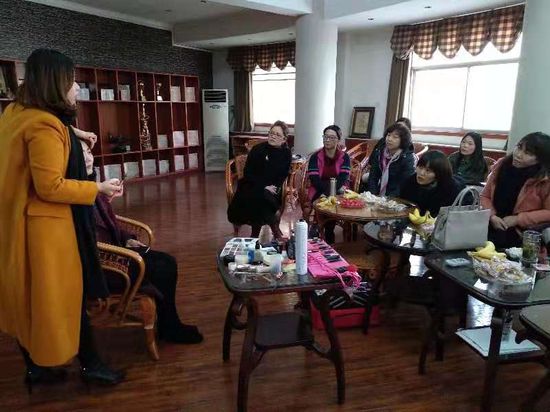 安娜老师从皮肤的构造、老化的过程及如何清洁护理肌肤等问题进行了详细的讲解,接着介绍了化妆的程序及必备的产品和工具,并现场请女教师上台当模特,讲解和示范了护肤的基本步骤、彩妆的上妆环节、发型的处理等,让在场的每位教师零距离地感受到了“化妆”的魅力。女教工们还现场练习了刚刚学会的盘发技巧,会场里不时传出大家愉快的笑声。