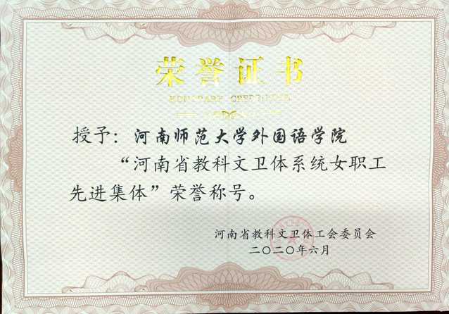 近日从河南省教科文卫体工会委员会传来喜讯,我院荣获2020年度“河南省教科文卫体系统女职工先进集体”荣誉称号。