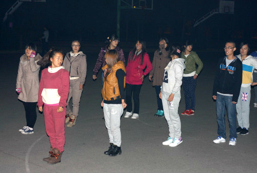 外国语学院分配了王伊佳等三个技术纯熟的教练,于10月31日对健美操队员进行初步选拔,并于当天晚上开始对选拔出的队员进行系统训练。训练过程中,教练细心教学指出队员动作中存在的问题。感情上的投入更是教练强调的部分,教练告诉队员们,健美操是一项积极向上的团体活动,不仅需要标准的动作,更是需要每名队员的感情投入,队员们谨记在心,认真完成动作的同时,表现出青春与活力,同时展现积极向上的大学生风貌。11月17日进行了最后的参赛队员确定,选出了16名选手及2名替补,队员们正处于认真、紧张的排练中。