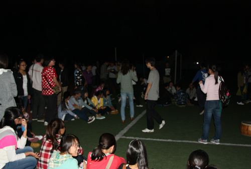在热闹可爱的兔子舞中,本次活动徐徐拉开帷幕。伴着阵阵的鼓声和响亮的掌声,同学们“甩掉”了初见时的羞怯与矜持,积极而热情的玩起击鼓传棒的游戏。来自物理与电子工程学院的同学为大家带来了一首后弦的《海口》,动人的旋律引来现场掌声阵阵。外国语学院的同学也不甘示弱,为大家献上一曲动听的《候鸟》,同学们以草代花,为表演的同学鼓励加油。随后,同学们开始进行萝卜蹲游戏,即把同学们平均分成四组,每组可以想一个自己的名字,然后组员面朝内,双手分别搭在两侧人的肩膀上,抱作一圈。随机选定一组先开始,蹲的时候喊相应的口号,这个游戏完全调动起同学们的积极性。随着活动的进行,物理与电子工程学院院团委学生会主席杨乐同学和外国语学院学生会主席宋歌同学的两人合唱将活动推向了高潮。本次联谊活动在同学们的欢声笑语中画上了圆满的句号。
