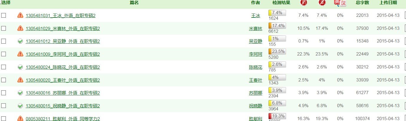 1. “第二次”检测结果见附件。硕士学位论文总体文字复制比例(在排除自引率,即引述作者自己发表的文章所占比例之后,下同)应低于20%。高于20%的,本次不接受其学位申请。