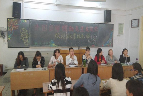 英语教育、翻译、法语、日语四个专业的新老生交流会分布在五个教室同时进行,活动分为讲解和问答两个环节,主题内容分为学习、生活、就业等方面。活动伊始,大二、大三学生代表首先根据之前收集到的新生的问题,就专业认知、学习方法、学习习惯、学习态度展开讲解,独到的经验给在座的新同学带来很大启发。紧接着,学生代表们关于如何过好大学生活进行探讨,在座的同学也跟着思考。随后是新老生问答环节,新生们根据近一个月的大学初体验踊跃提问,在座的学长学姐们不遗余力地回答。五个教室都在热烈地进行中,同学们互相学习,交流沟通,提出问题后商量对策,氛围非常活跃。