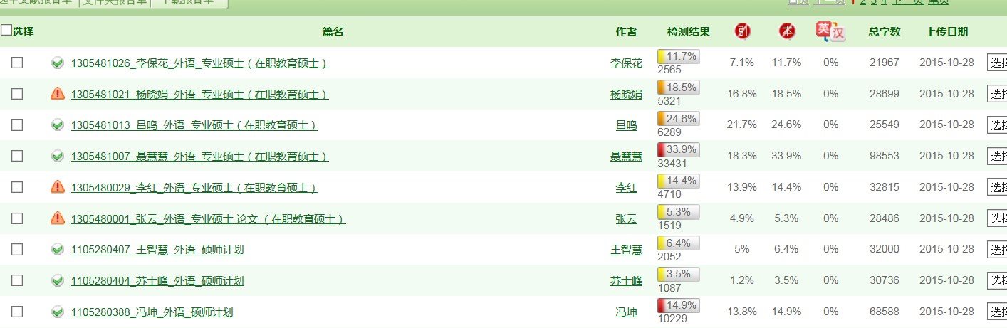 硕士学位论文总体文字复制比例(在排除自引率,即引述作者自己发表的文章所占比例之后,下同)应低于20%。高于20%的,本次不接受其学位申请。