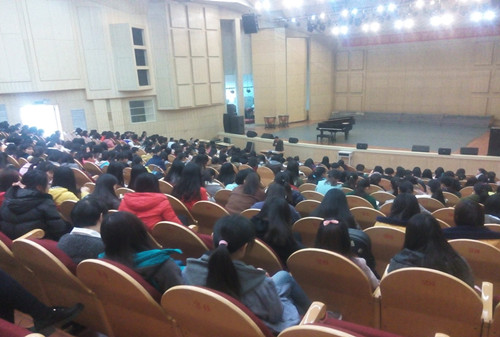 315日下午,外国语学院2016届毕业生就业暨英语专业八级考试动员大会在我校帕瓦罗蒂音乐厅召开。我院党委副书记赵红杰出席会议并讲话12级辅导员郭紫君、李玉冰及500余名学生共同参加了此次动员大会。会议由我院12级辅导员郭紫君主持。