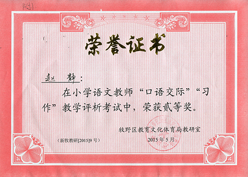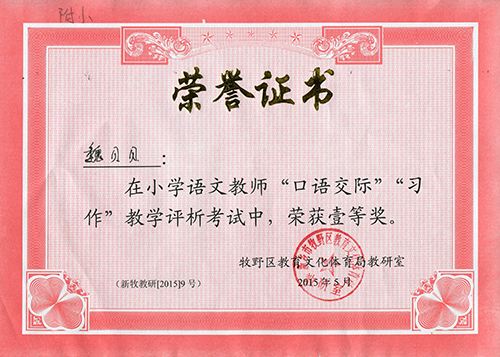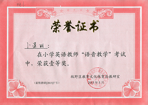 我校张相松老师获区科学教师“物质领域”考试一等奖;卜景丽老师获英语教师“语音教学”考试一等奖;魏贝贝老师获语文“口语交际”“习作”教学评析考试中,荣获一等奖,赵静老师荣获二等奖。
