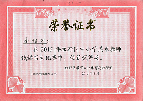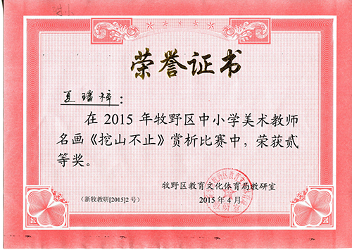 月,牧野区美术教师基本功比赛中,我校夏璠梓老师名画《挖山不止》赏析获二等奖,李桂平老师线描写生获二等奖。