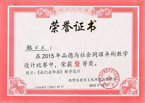 魏贝贝老师获区品德与社会同课异构一等奖