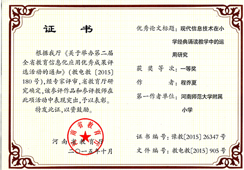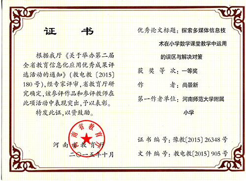 我校程乔夏、尚景新两位老师获省第二届优秀论文成果一等奖