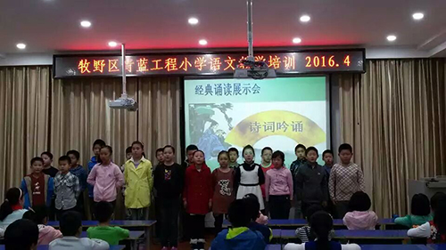 4月5日下午,“牧野区青蓝工程小学语文教学培训”在我校四楼多媒体教室进行。此次培训,共有50多位年轻语文老师参加,由区语文教研员杨艳芳老师主持和点评。