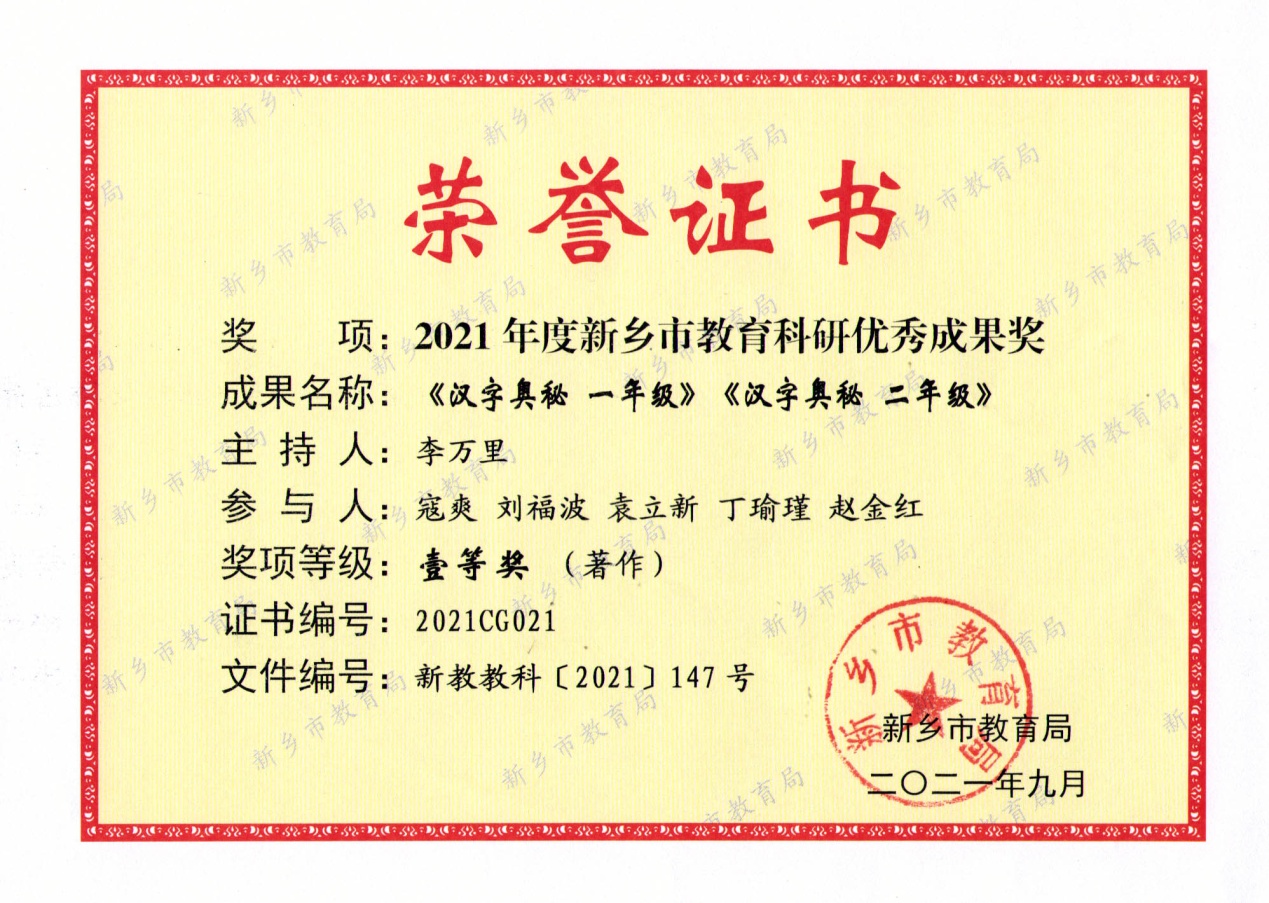 月,李万里校长主编的《汉字奥秘 一年级》《汉字奥秘 二年级》两部著作,获