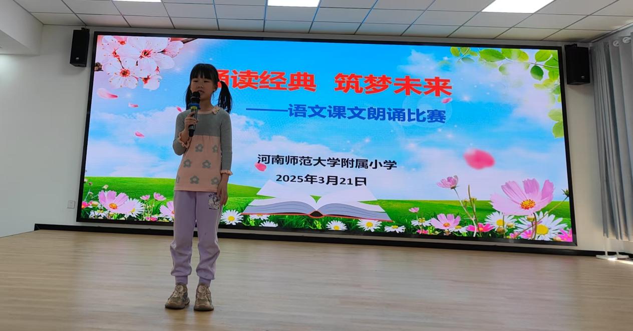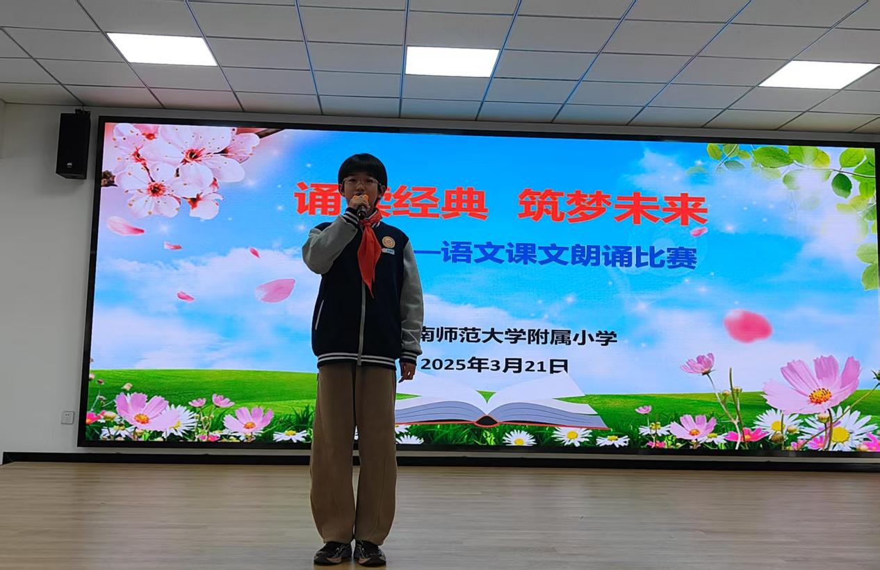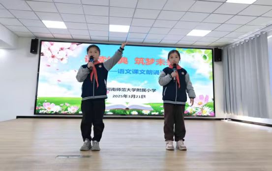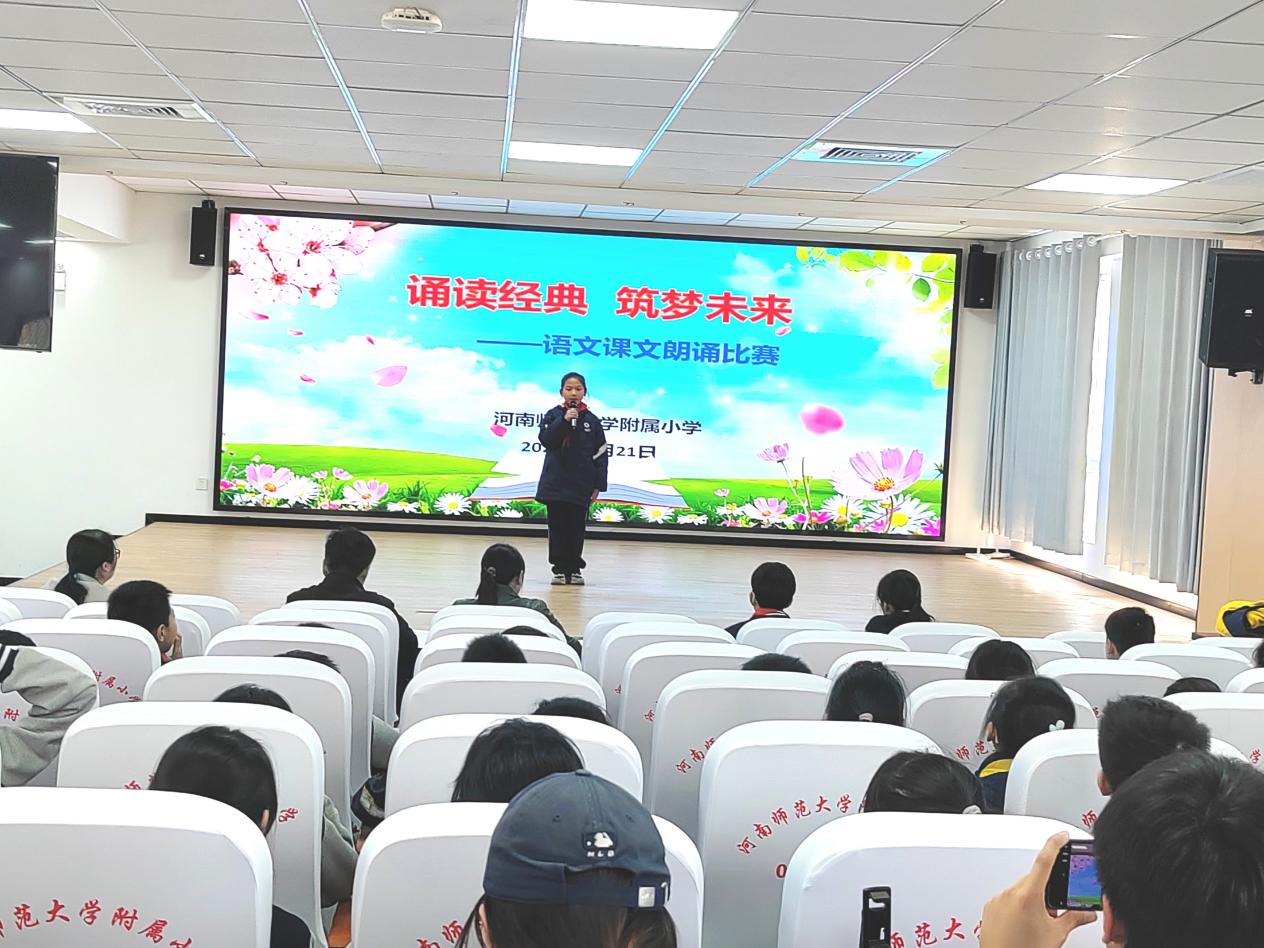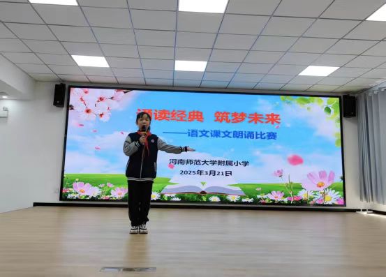 为弘扬中华优秀传统文化,提升语文核心素养,助力附小少年在阅读课本中感知文明,开阔视野,3月21日下午,我校在一楼报告厅举行了“诵读经典 筑梦未来”语文课文朗读比赛。经过班级海选、年级推荐的层层选拔,来自全校各班的朗读小能手同台竞技,用声音演绎文字魅力,以经典浸润童年时光。