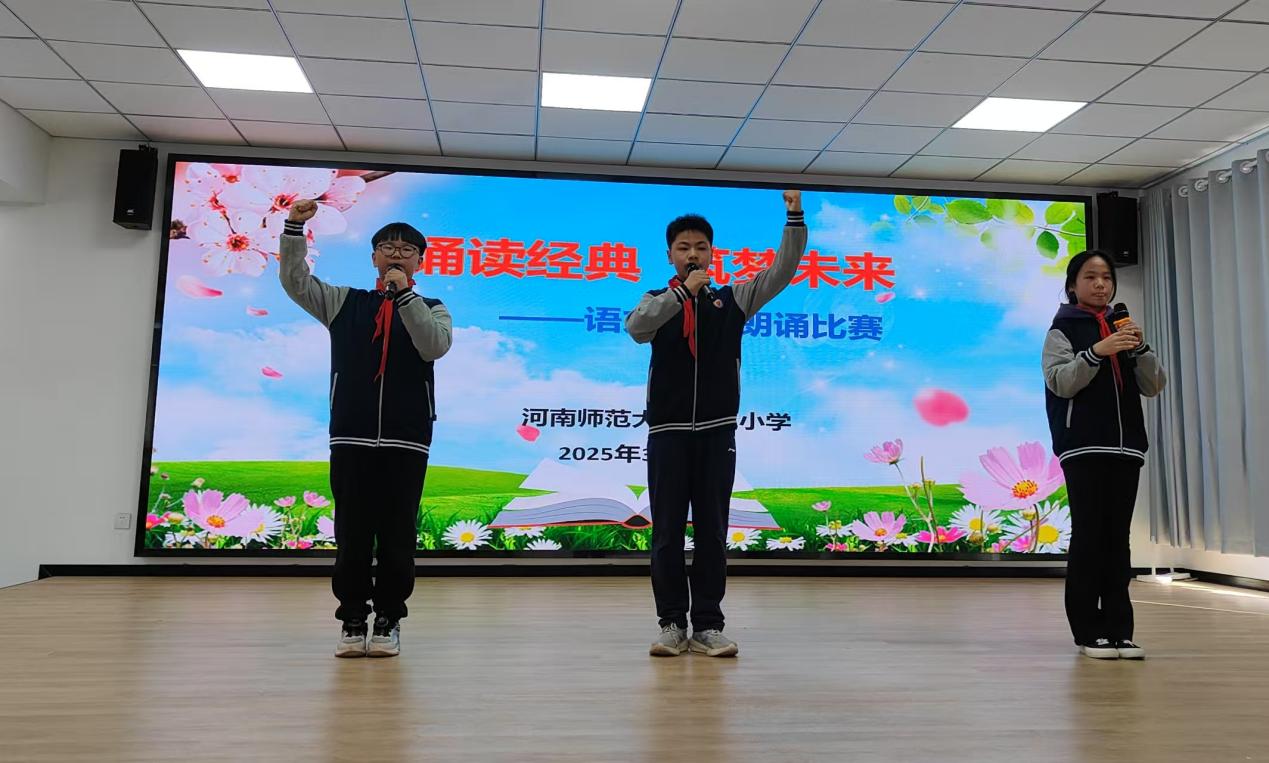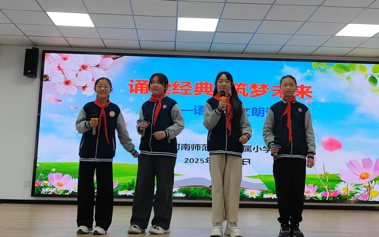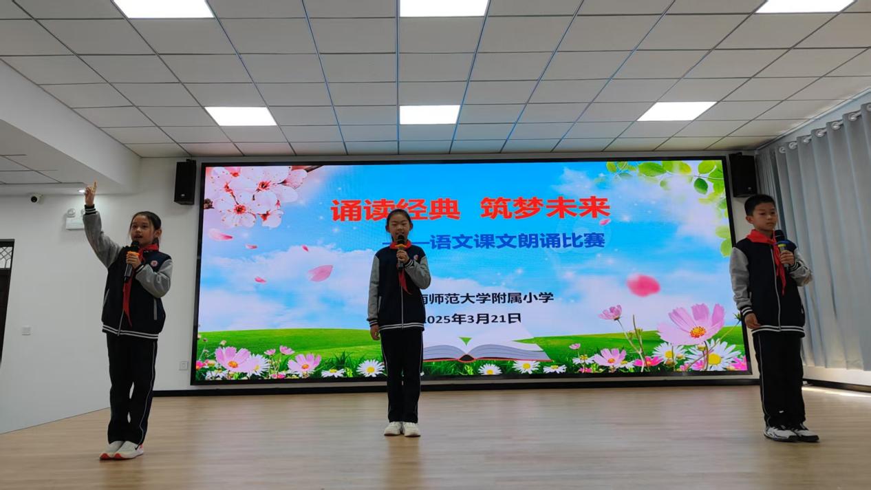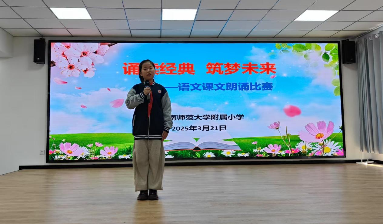 为弘扬中华优秀传统文化,提升语文核心素养,助力附小少年在阅读课本中感知文明,开阔视野,3月21日下午,我校在一楼报告厅举行了“诵读经典 筑梦未来”语文课文朗读比赛。经过班级海选、年级推荐的层层选拔,来自全校各班的朗读小能手同台竞技,用声音演绎文字魅力,以经典浸润童年时光。