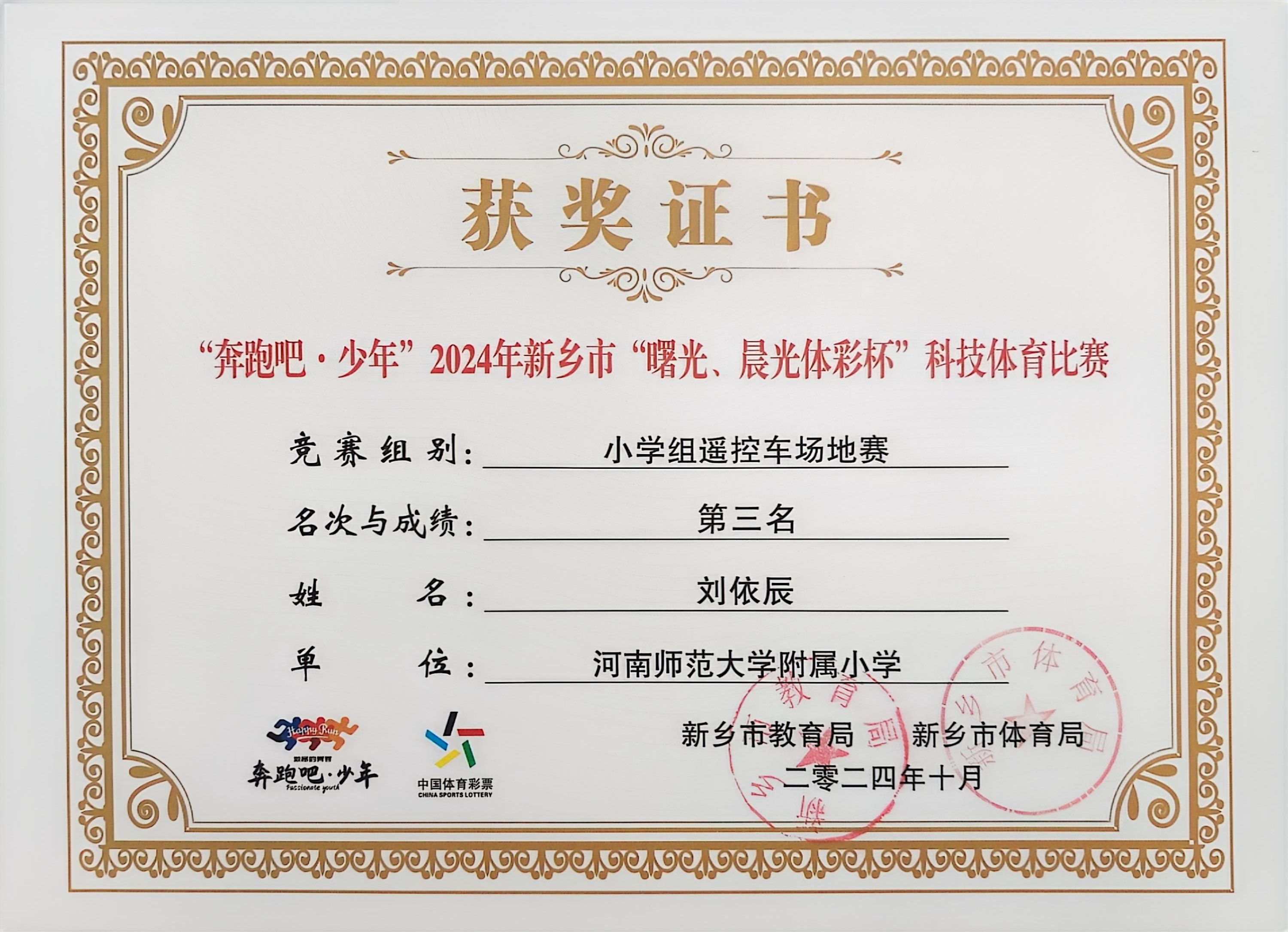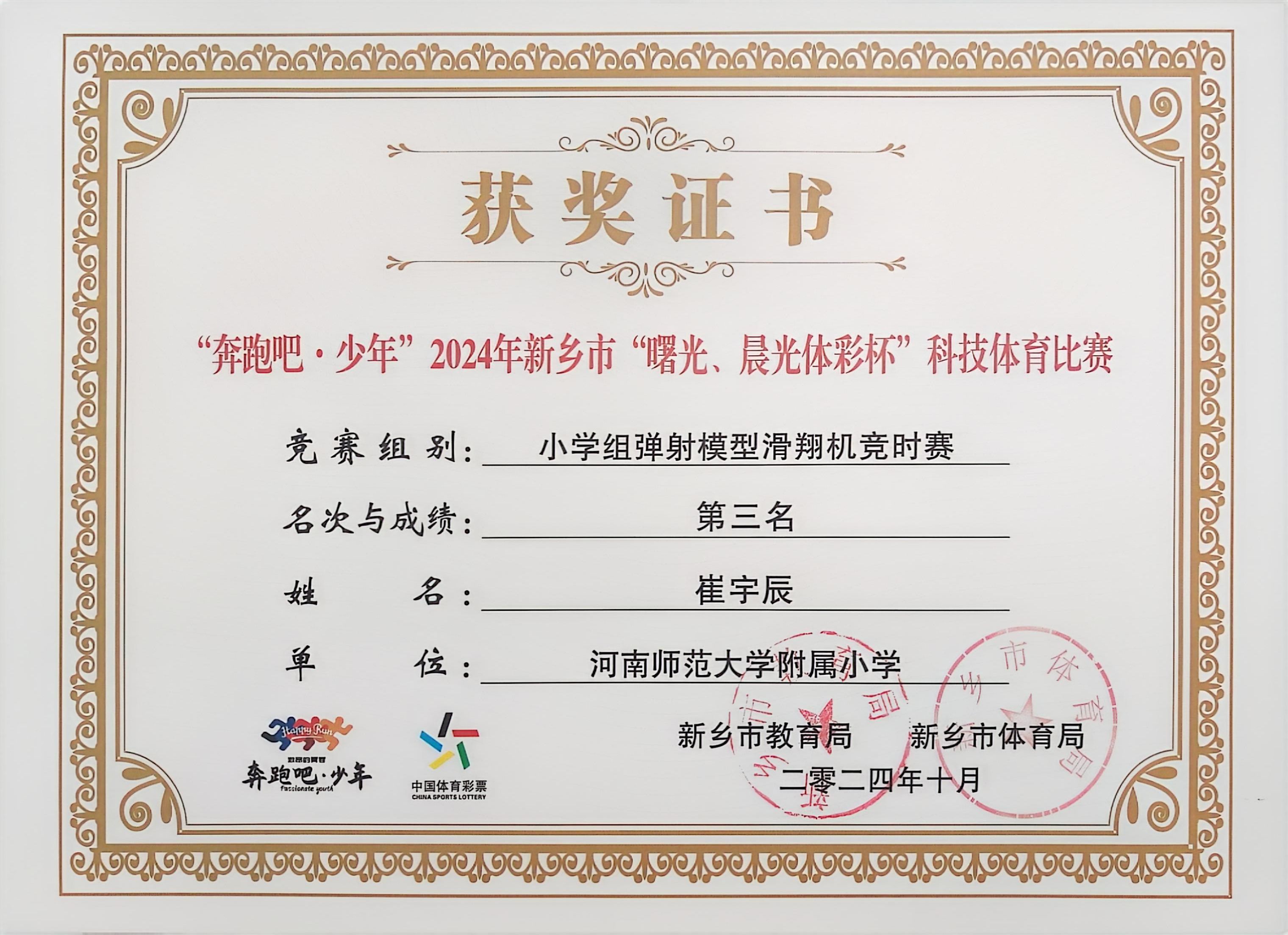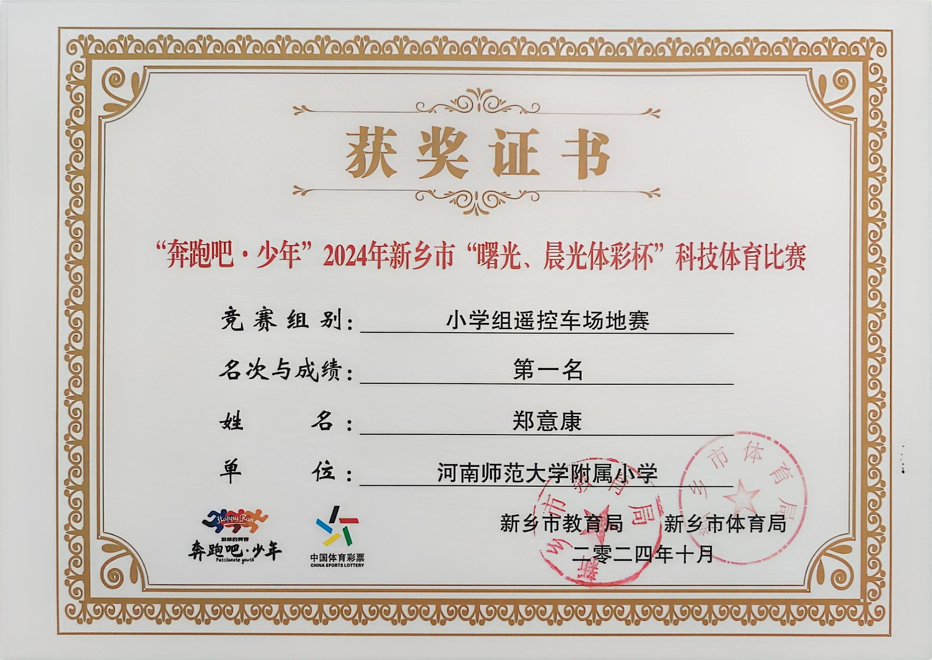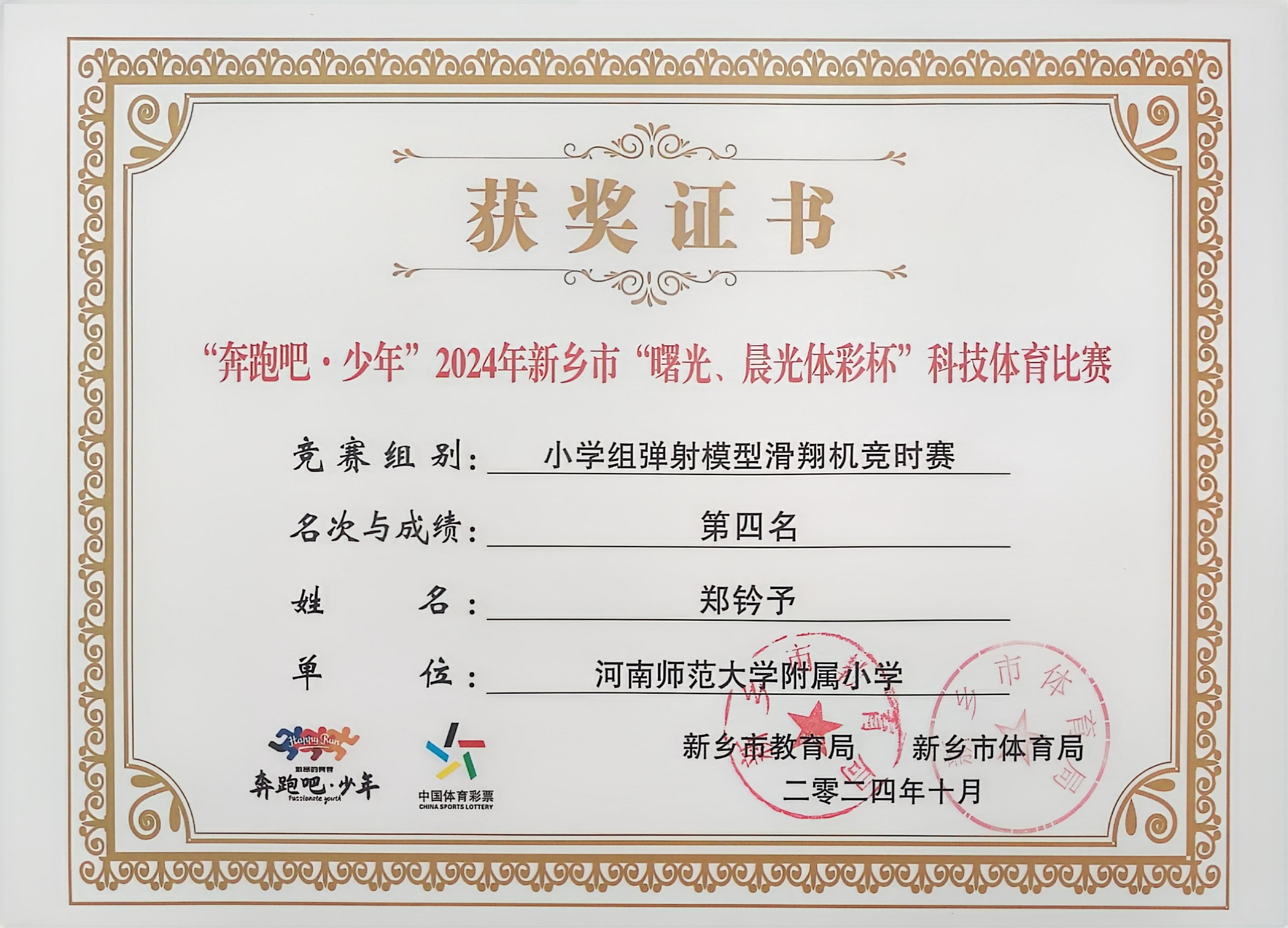“奔跑吧·少年”2024年新乡市“曙光、晨光体彩杯”科技体育比赛中学生荣获佳绩