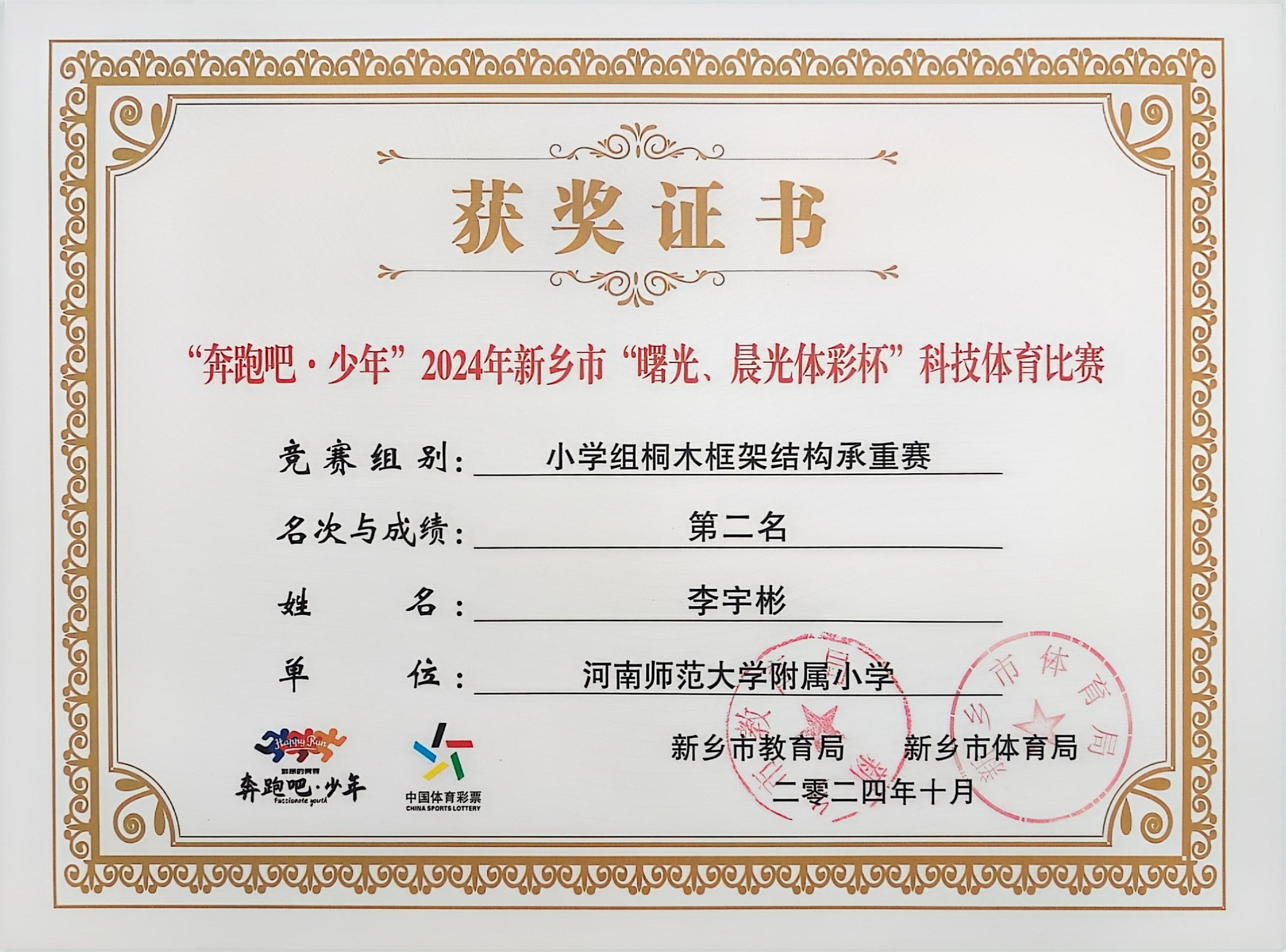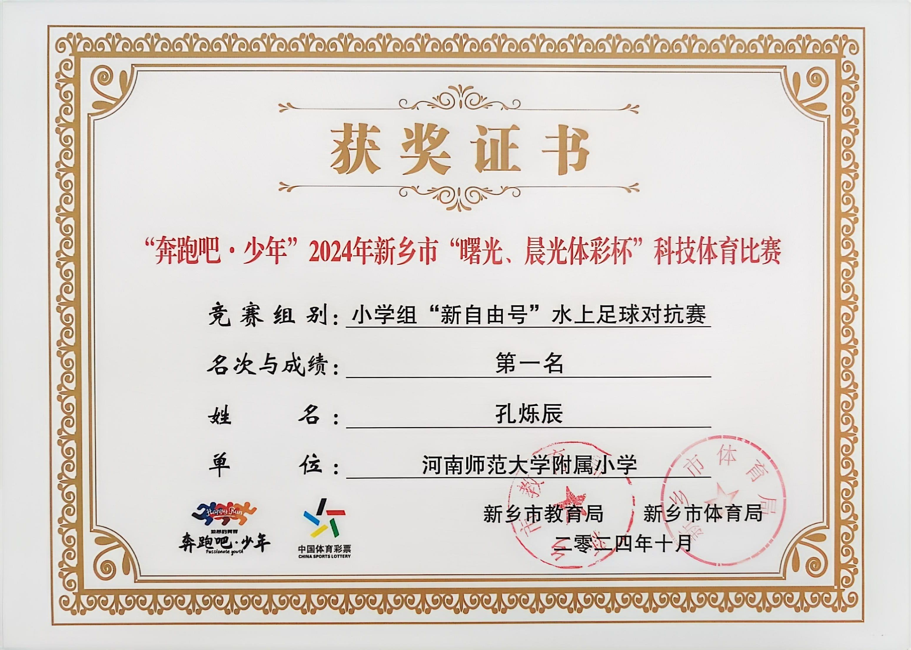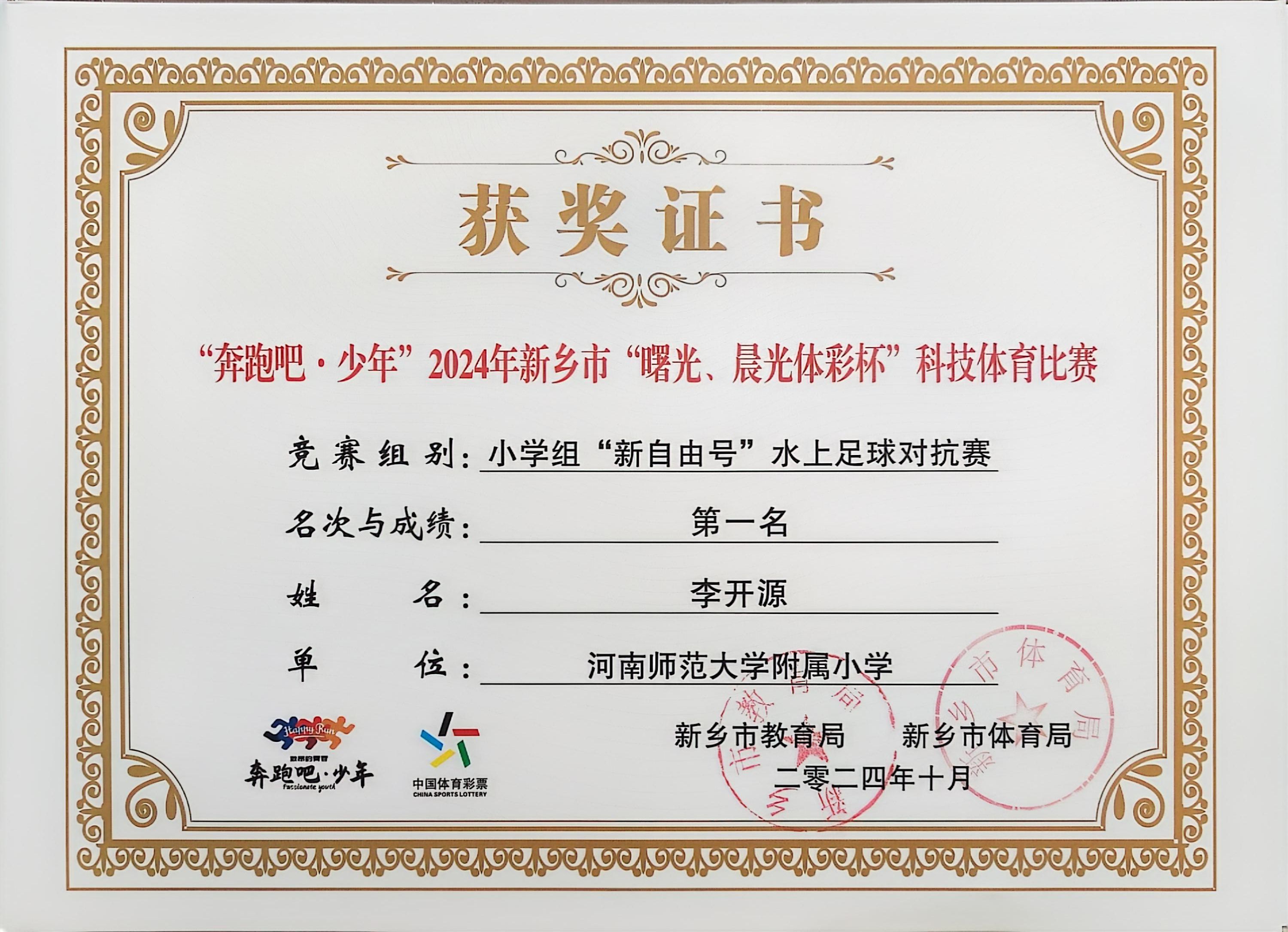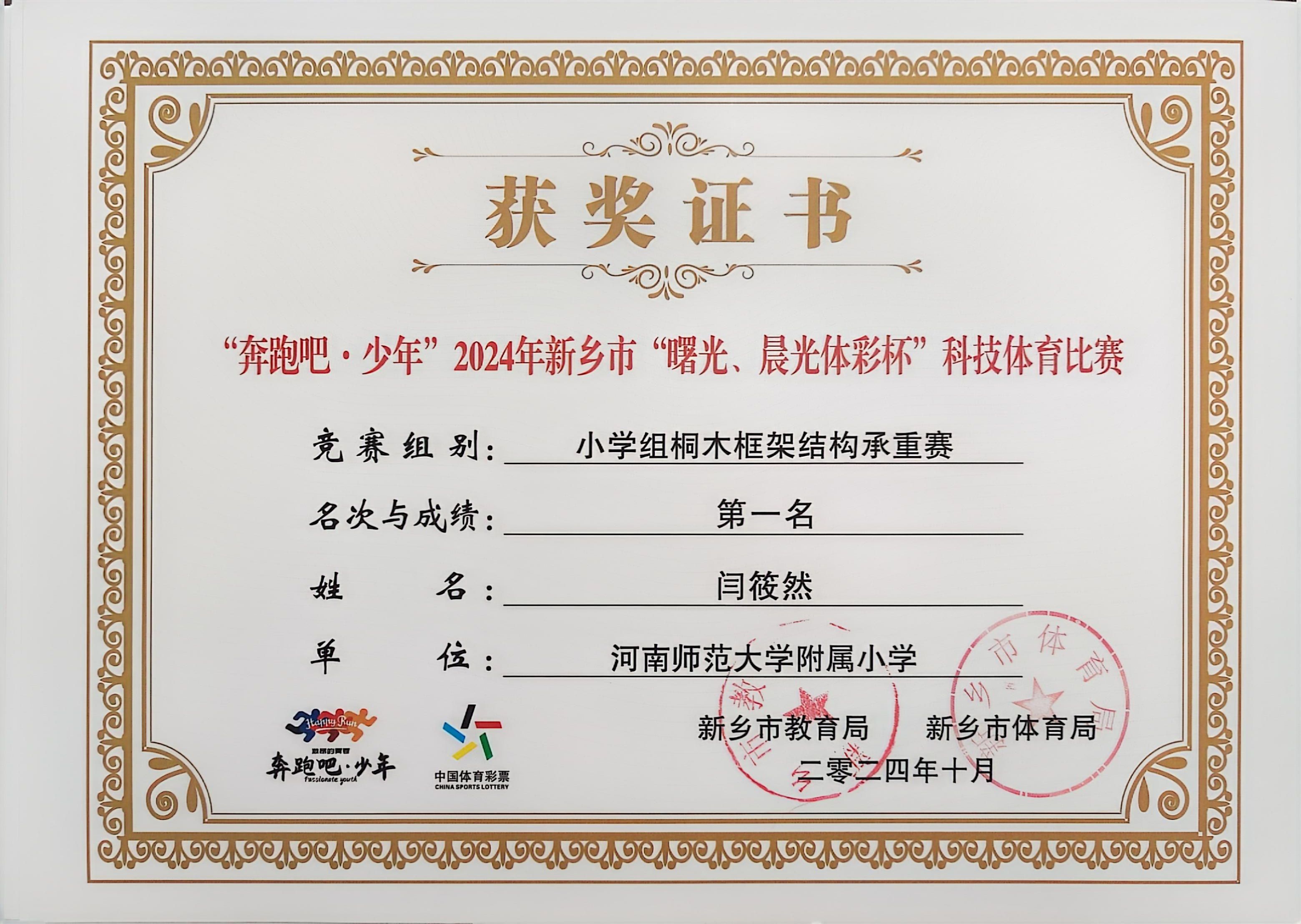 “奔跑吧·少年”2024年新乡市“曙光、晨光体彩杯”科技体育比赛中学生荣获佳绩